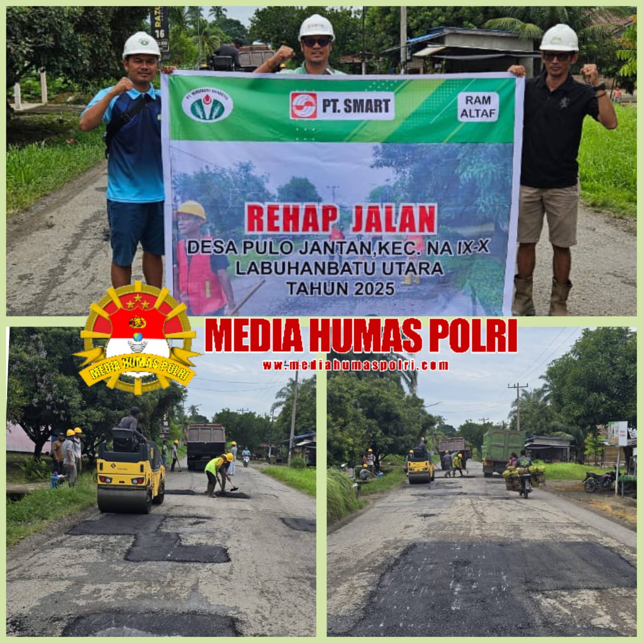 Demi keberlangsungan pengguna jalan Poros Desa Pulo Jantan,PT.Smart Tbk Padang Halaban, PT. Marbau Jaya, dan juga CV Altap melakukan kolaborasi untuk melakukan perbaikan jalan Desa Pulo Jantan, Kecamatan NA IX-X, Kabupaten Labuhanbatu Utara, sabtu (13/9/2025)