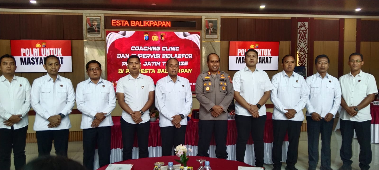 Kepala Laboratorium Forensik (Labfor) Polda Jawa Timur Kombes Pol Marjoko, S.I.K., M.Si., membuka kegiatan Coaching Clinic dan Supervisi Bidlabfor Polda Jatim Tahun 2025 di Aula Polresta Balikpapan, Rabu (5/11/2025). Kegiatan ini dihadiri langsung oleh Wakapolresta Balikpapan AKBP Hendrik Eka Bahalwan, S.H., S.I.K., para Kasat, Kanit, serta penyidik dari berbagai satuan fungsi Polresta Balikpapan.