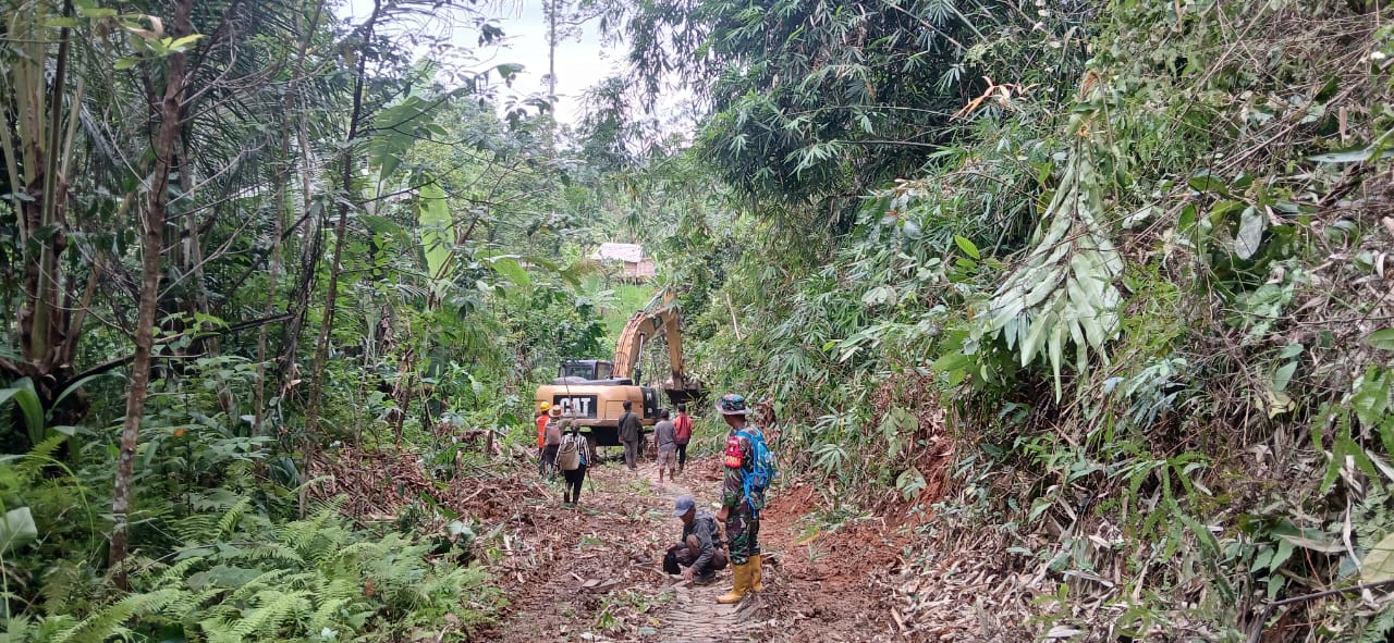 Babinsa Koramil 1002-01/Batang Alai Selatan, Erli Sepriyanto, melaksanakan pendampingan kegiatan pembukaan jalan sebagai persiapan pemasangan tiang listrik masuk desa di Desa Atiran, Kecamatan Batang Alai Timur, Kabupaten Hulu Sungai Tengah, Senin (08/12/2025). Jalur listrik tersebut rencananya akan menghubungkan Desa Atiran menuju Desa Batu Perahu, sehingga manfaat penerangan dapat dirasakan oleh dua desa sekaligus.