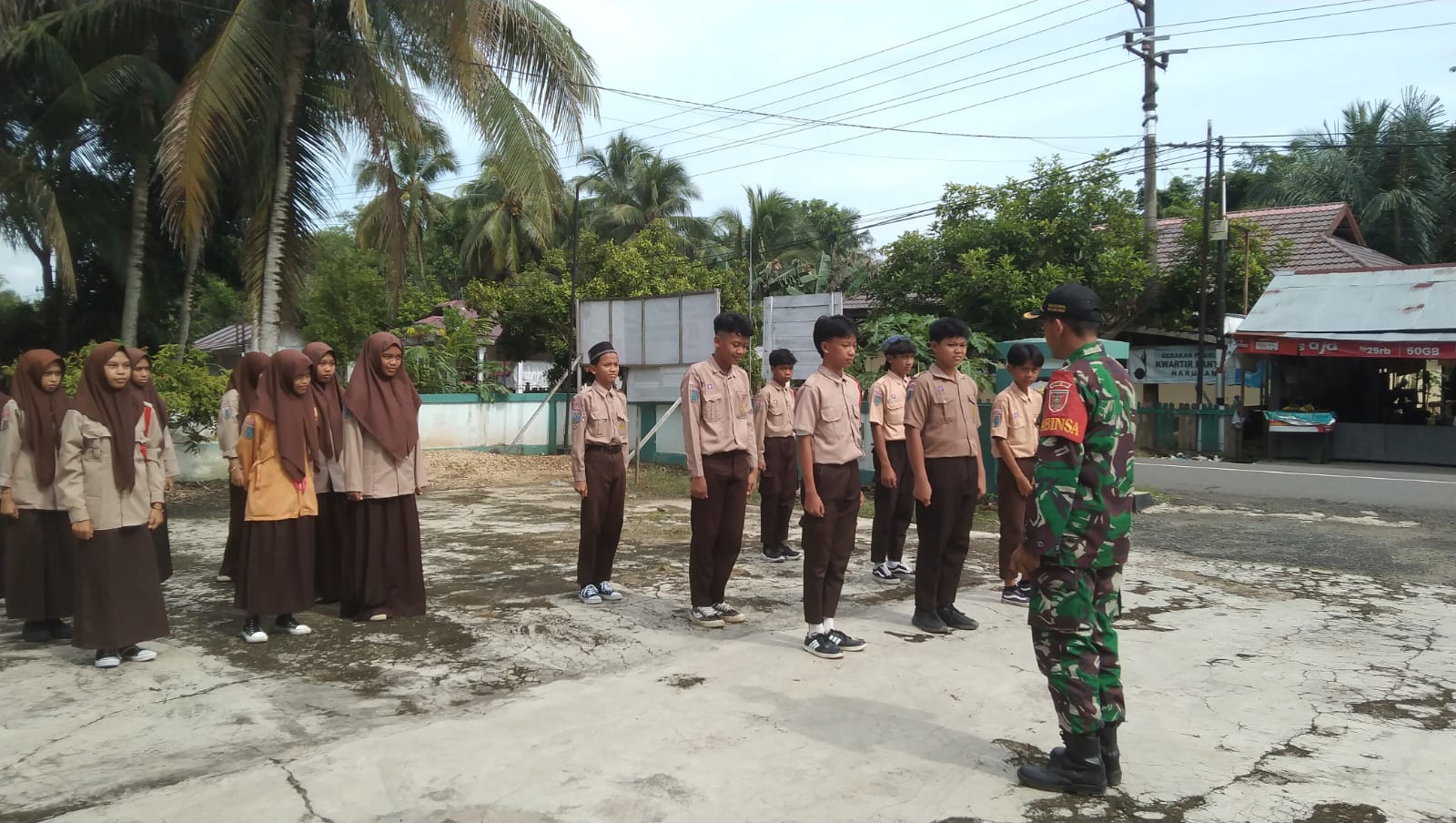 Personel Koramil 1002-03/Haruyan, Serka Edy Mulyanto, secara rutin memberikan pelatihan Peraturan Baris Berbaris (PBB) kepada para penggalang Pramuka dari SMPN 8 HST dan MTs NU Haruyan.