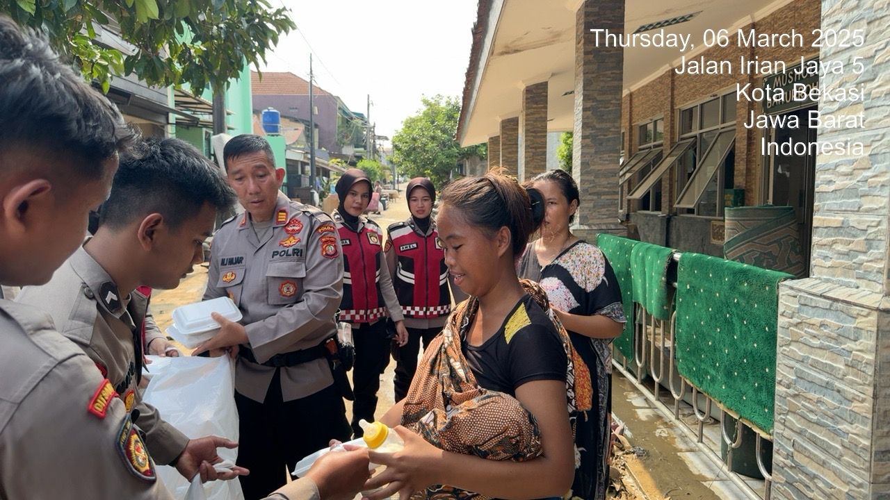 Dalam semangat berbagi dan kepedulian terhadap masyarakat yang menjalankan ibadah puasa, jajaran kepolisian dari Korsabhara Baharkam Polri dan Direktorat Samapta (Ditsamapta) Polda Metro Jaya menggelar aksi sosial dengan membagikan takjil serta makanan kepada warga di sejumlah wilayah terdampak banjir, Kamis (6/3).