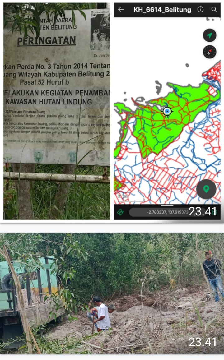 ” Kami beberapa hari yang lalu sudah pernah Sidak ke lokasi Penambangan Pasir Ilegal yang Sudah memporak porandakan kawasan Hutan Lindung di desa Juru Seberang., sudah saya hentikan dan memasang plang penghentian Aktifitas Namun mereka bukannya berenti tapi malah semakin marak dan mobil angkut pasirnya semakin banyak., untuk menyikapi hal ini kami sudah melaporkan ke Mabes Polri, dan Gakkum KLHK. Kemungkinan dalam dekat mereka akan melakukan penangkapan dan penindakan”.Pungkas Yoyon.