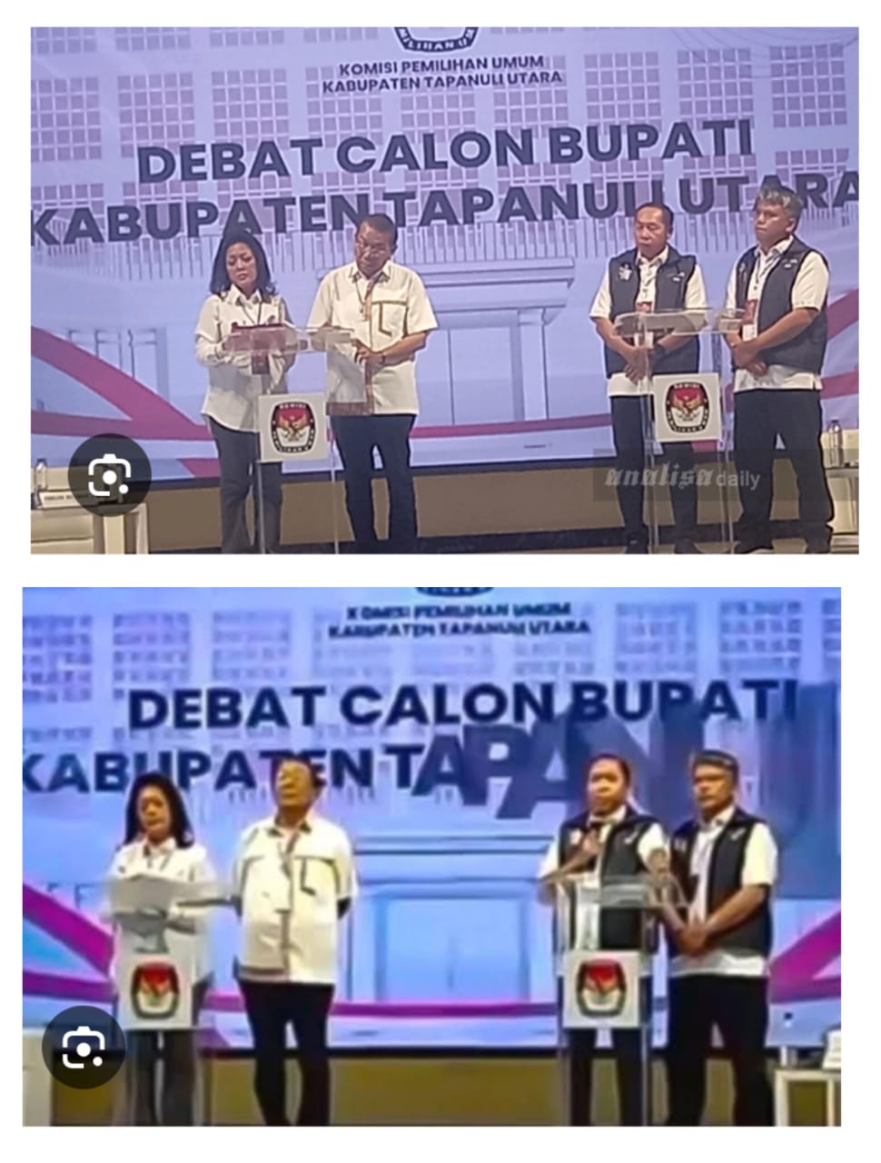 Dua pasangan calon Bupati dan wakil Bupati Kabupaten Tapanuli Utara, Paslon no 01 Satika – Sarlandi dan 02 JTP – Dens saling adu visi misi pada debat publik Pilkada serentak 2024 yang digelar KPU di gedung Raja Pontas Pearaja Tarutung. Dalam debat itu masing-masing Paslon diberi waktu kesempatan yang sama sekitar 240 detik untuk menyampaikan visi misinya. Debat itu mengangkat tema “mensejahterakan dan memajukan masyarakat Kabupaten Tapanuli Utara”. Debat itu menghadirkan empat orang finalis, masing-masing Dr Sri Asih Marbun SH S.Kom MM dan Dr Drs Malon Siagian MM, Dr J Hutapea dan Dr Pardomuan Simanullang Mpd. Ketua KPU Taput Swardy Pasaribu menyebut debat debat itu merupakan salah satu metode kampanye yang difasilitasi KPU dalam pelaksanaan tahapan pemilihan Bupati dan wakil Bupati Taput 2024. Sesuai keputusan KPU nomor 1363 tahun 2924 dan debat publik di Taput di lakukan hanya satu kali saja. Bertujuan untuk menyebarkan luaskan profil visi misi program kerja Paslon dan memberikan informasi kepada masyarakat serta menggali mengkolaborasikan tema yang diangkat.
