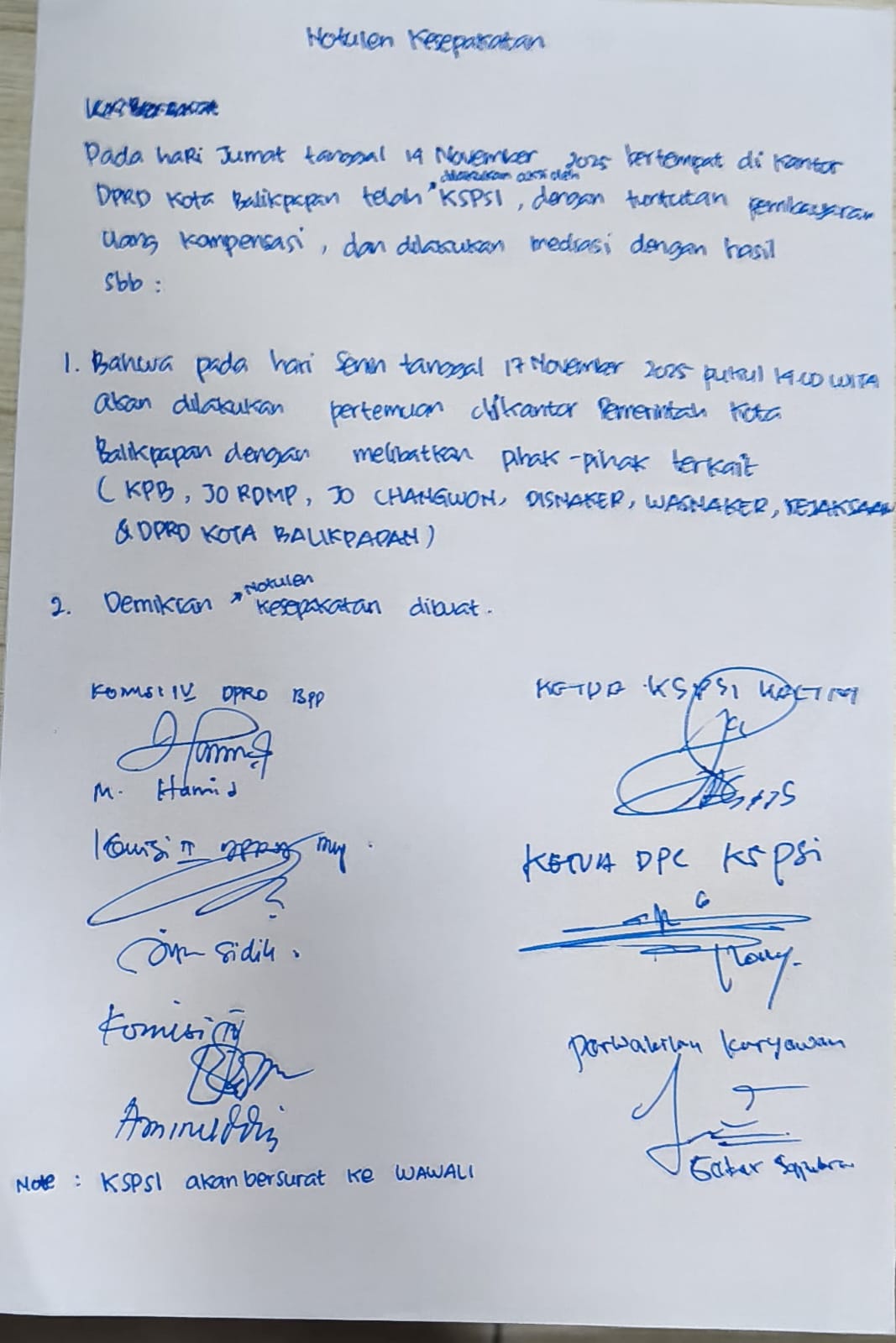 KSPSI akan menyampaikan surat resmi kepada Wakil Wali Kota Balikpapan.