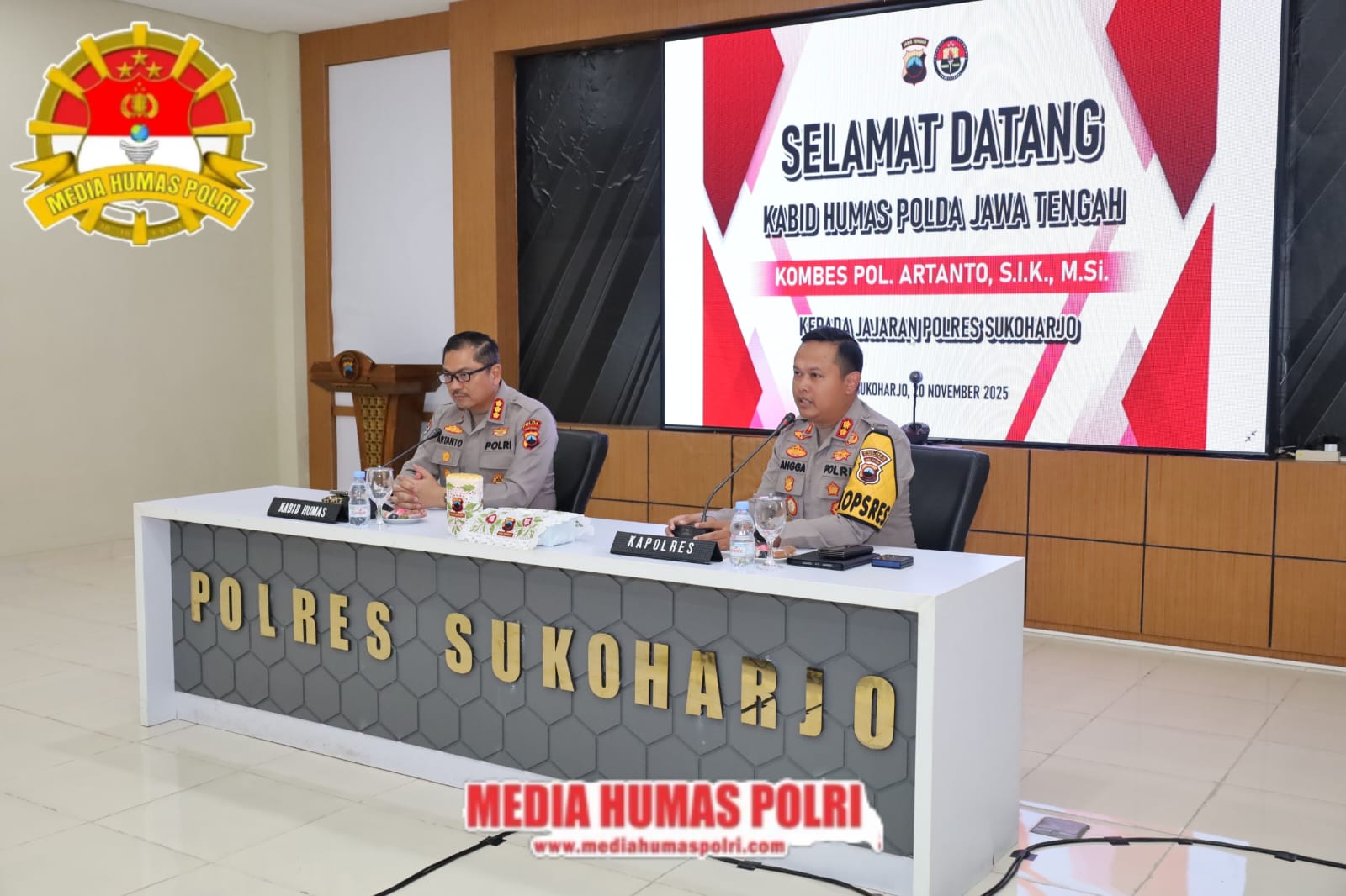 .Upaya meningkatkan kualitas komunikasi publik dan memperkuat citra positif Polri terus dilakukan. Pada Kamis (20/11/2025), Kabid Humas Polda Jawa Tengah Kombes Pol Artanto berkunjung ke Polres Sukoharjo dan memberikan pembekalan terkait transformasi pelayanan publik dan strategi komunikasi modern di era digital. Kegiatan berlangsung di Ruang Vicon Polres Sukoharjo.