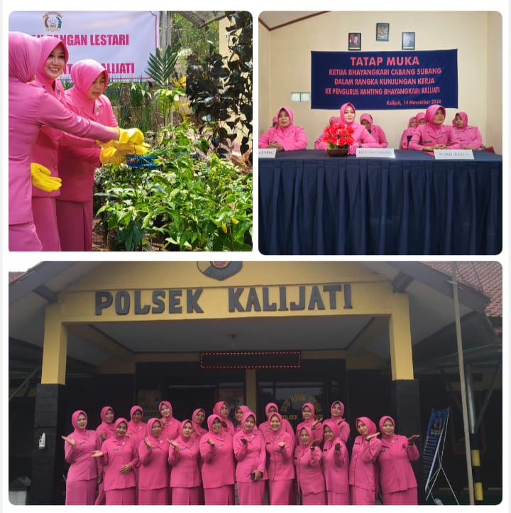 Ketua Bayangkari Cabang Subang Lione Ariek Indra, dalam kunjungannya tersebut,melakukan pengecekan pekarangan pangan lestari (P2L) Bayangkari ranting Kalijati, serta memanen tanaman sayuran yang ada di grend House Polsek Kalijati.