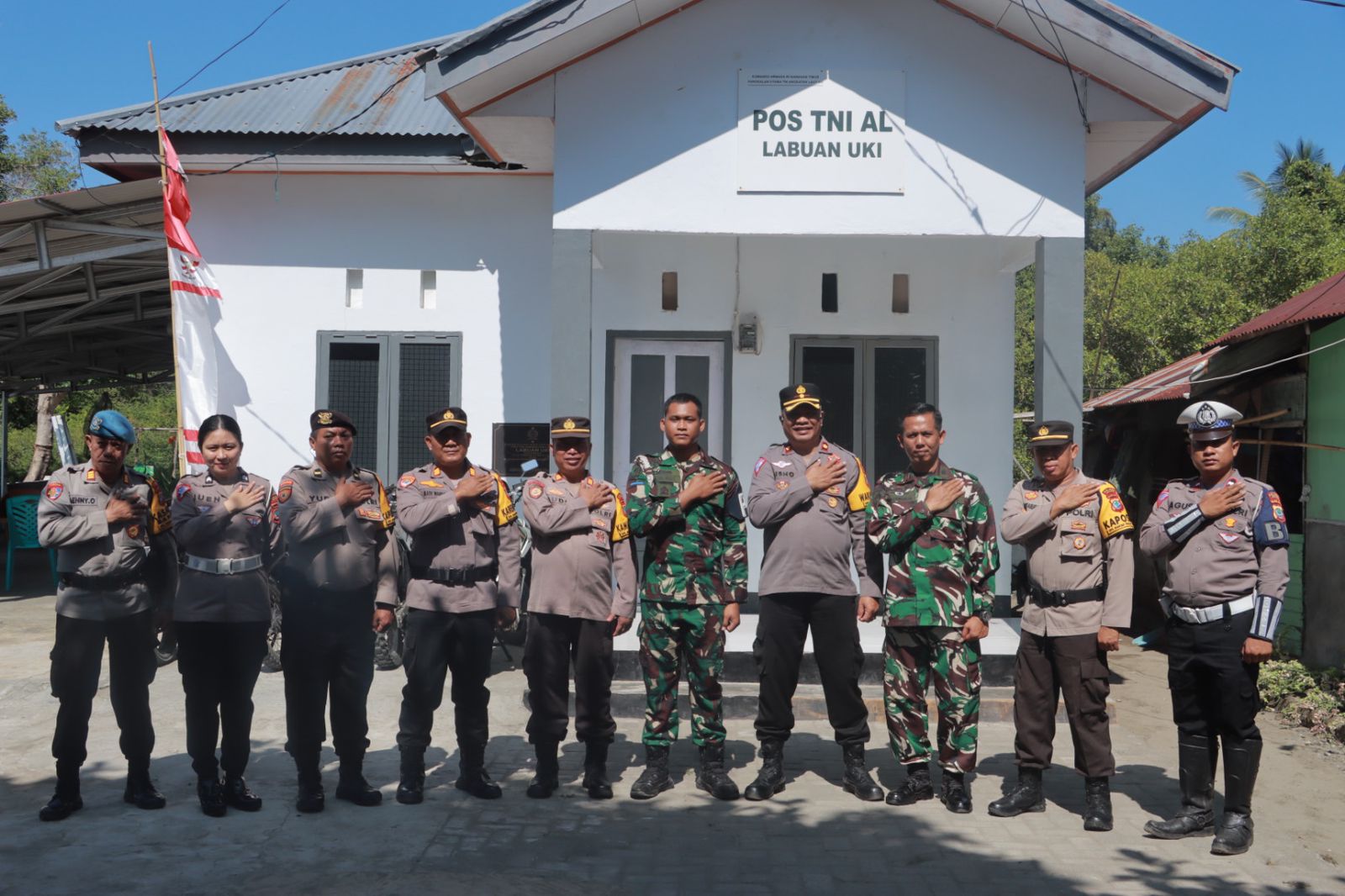 Dalam rangka HUT ke 79 TNI Angkatan Laut, Kapolres Bolmong melalui Wakapolres Kompol Risno Luas, S.Sos beserta pejabat utama berkunjung ke Pos TNI-AL Labuan Uki, Jum’at, (15/11/24). Pagi.