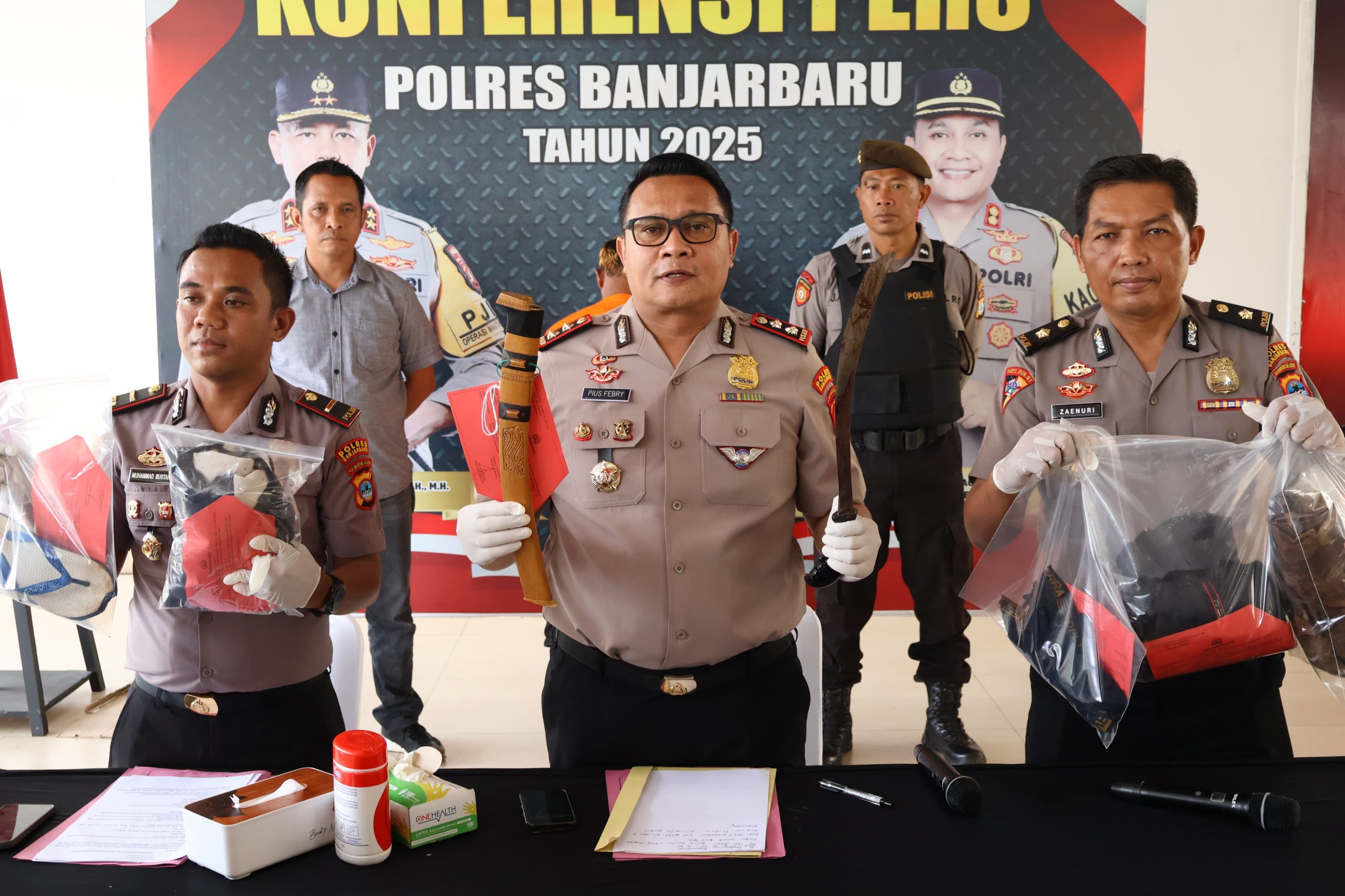 Kapolres Banjarbaru, AKBP Pius X Febry Aceng Loda, menegaskan bahwa A dijerat Pasal 340 subsider Pasal 338 dan Pasal 351 ayat 3 KUHP, dengan ancaman 10–20 tahun penjara. “Ada jeda waktu ketika tersangka memutuskan mengambil parang. Di situlah unsur perencanaan terpenuhi,” ujarnya dalam konferensi pers, Selasa (2/12/2025).