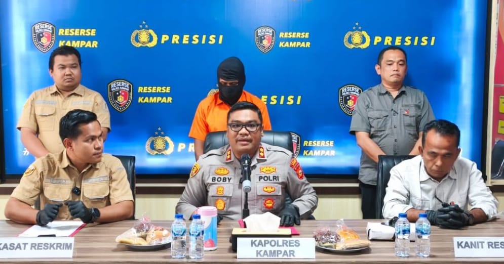 Kapolres Kampar AKBP Boby Putra Ramadhan Sebayang menjelaskan, penangkapan berlangsung cepat berkat kerja sama tim Satreskrim Polres Kampar dan Polsek Tambang yang menganalisis keterangan saksi dan rekaman CCTV.
