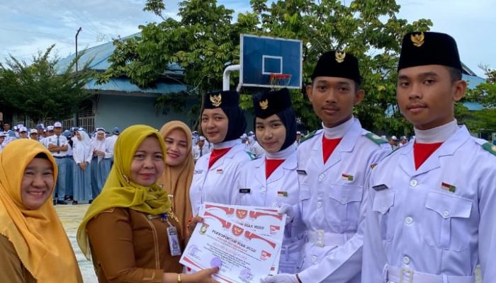 “Hari ini, saya serahkan Piagam penghargaan ini kepada ananda Fitri Ramadhani,” terima kasih ananda telah mengharumkan nama sekolah berkat semangat dan ketekunan mengikuti menjadi PASKIBRA Ditingkat Kabupaten Kampar pada upacara memperingati HUT RI Ke-80 pada tanggal 17 Agustus 2025 lalu,” ucap Hefnofita Yuliani, S.Pd, M.Si”