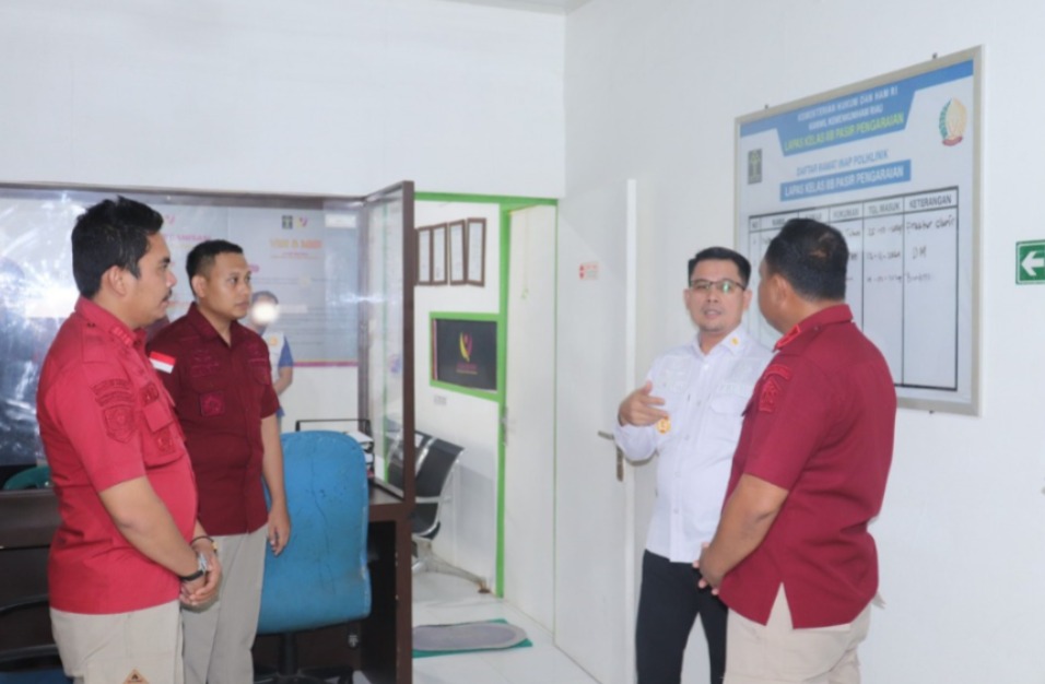 Kepala Bidang (Kabid) Perawatan, Pengamanan, dan Kepatuhan Internal Kantor Wilayah Direktorat Jenderal Pemasyarakatan Riau, Nimrot Sihotang bersama tim melakukan kunjungan kerja ke Lembaga Pemasyarakatan (Lapas) Kelas IIB Pasir Pangarayan.