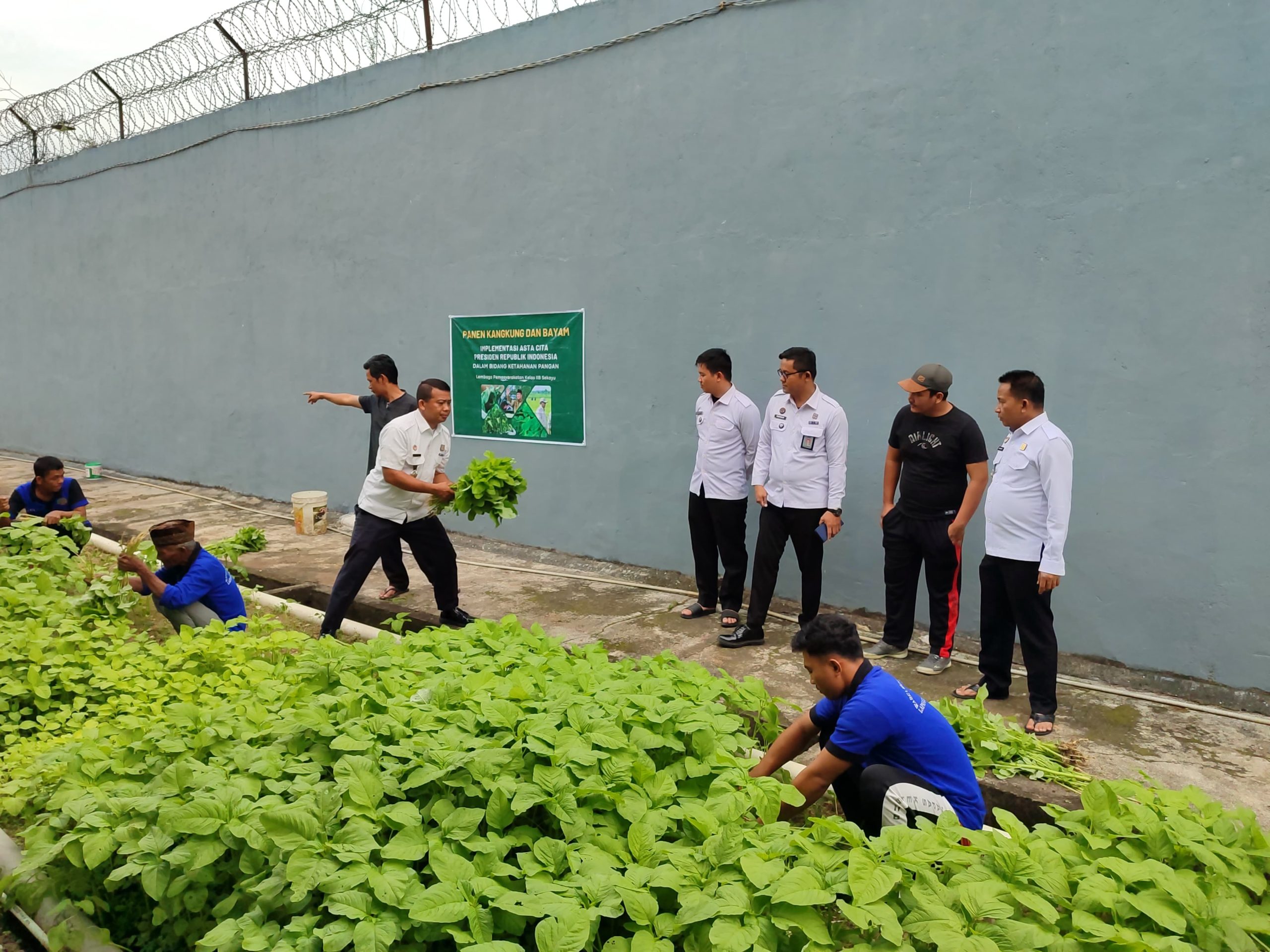 Lapas Kelas IIB Sekayu berhasil melakukan panen sayur kangkung dan bayam dalam rangka mendukung program Asta Cita yang digagas oleh Presiden Republik Indonesia, Prabowo Subianto, Rabu (11/12/2024).