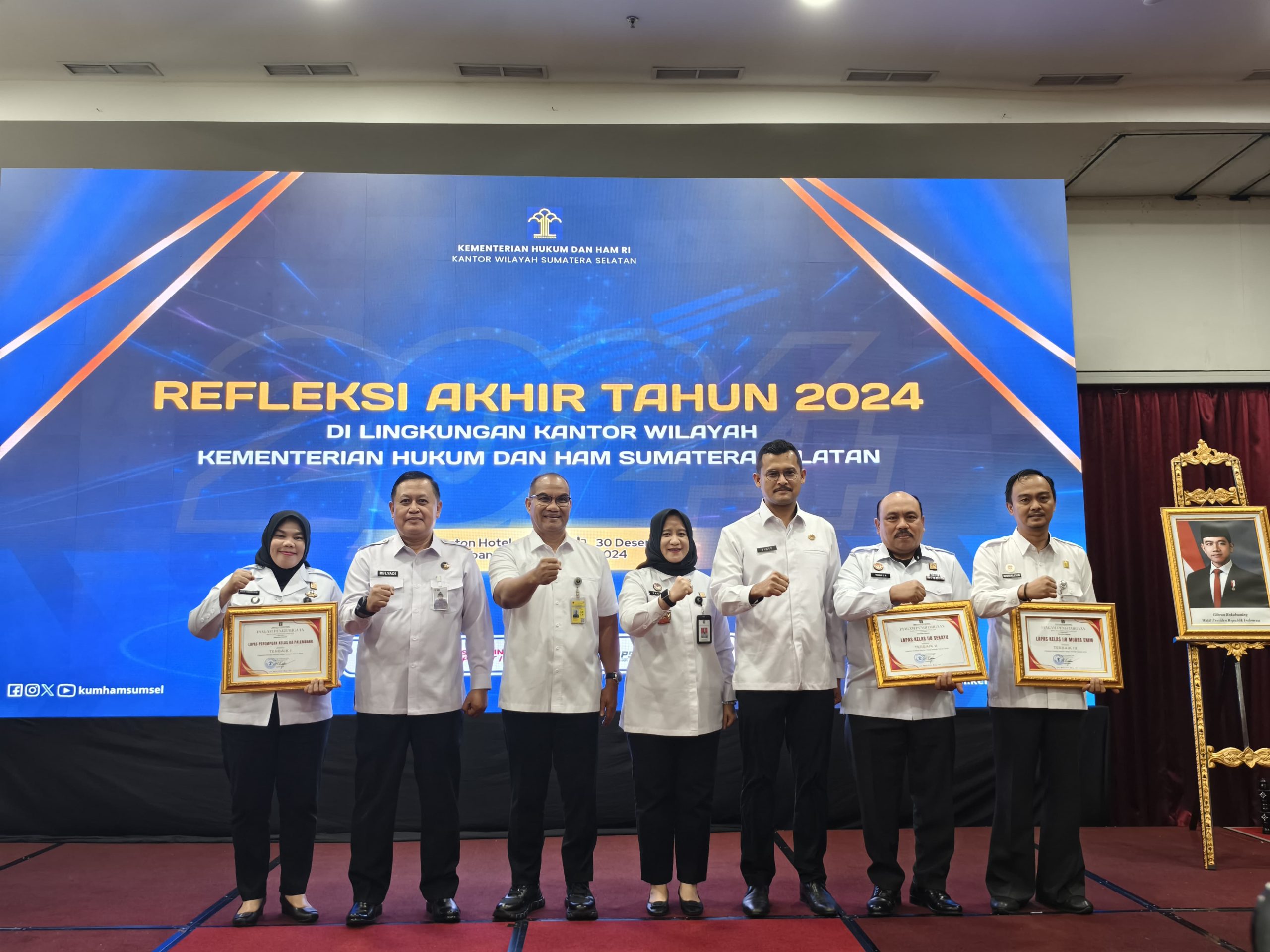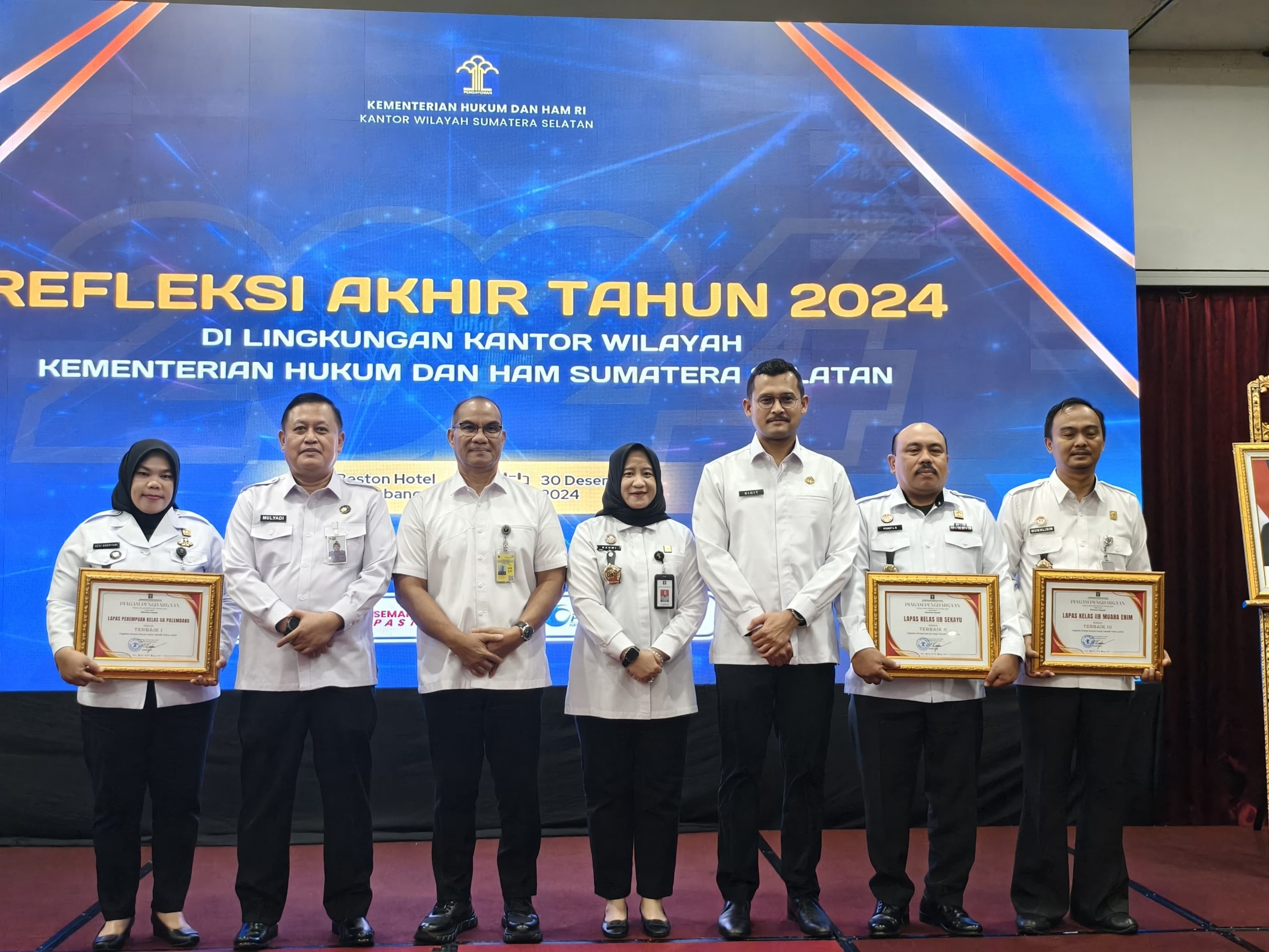 Penghargaan tersebut diberikan pada saat kegiatan Refleksi Akhir Tahun Kementerian Hukum dan HAM RI Tahun 2024, yang sekaligus dirangkaikan dengan acara pisah sambut Pimpinan Tinggi Pratama Kantor Wilayah Kemenkumham Sumsel di Hotel Beston Palembang.