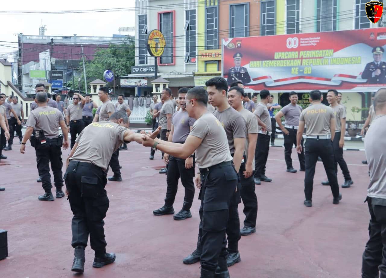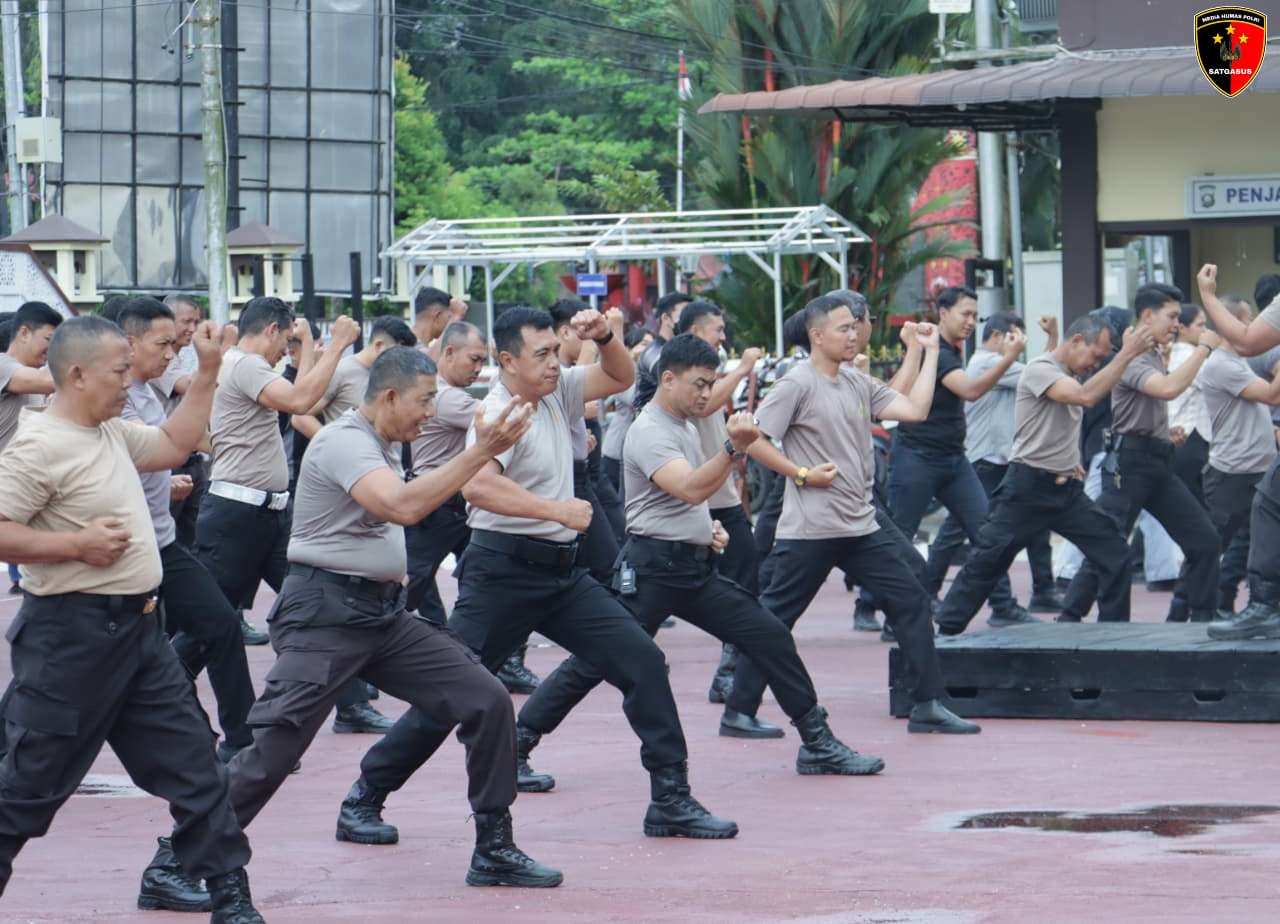Polres Sanggau melaksanakan Latihan Peningkatan Kemampuan (Latkatpuan) Beladiri Polri di halaman Mapolres Sanggau, Selasa (16/9/2025) pagi. Kegiatan ini diikuti seluruh personel sebagai bagian dari pembinaan fisik dan profesionalisme aparat kepolisian.
