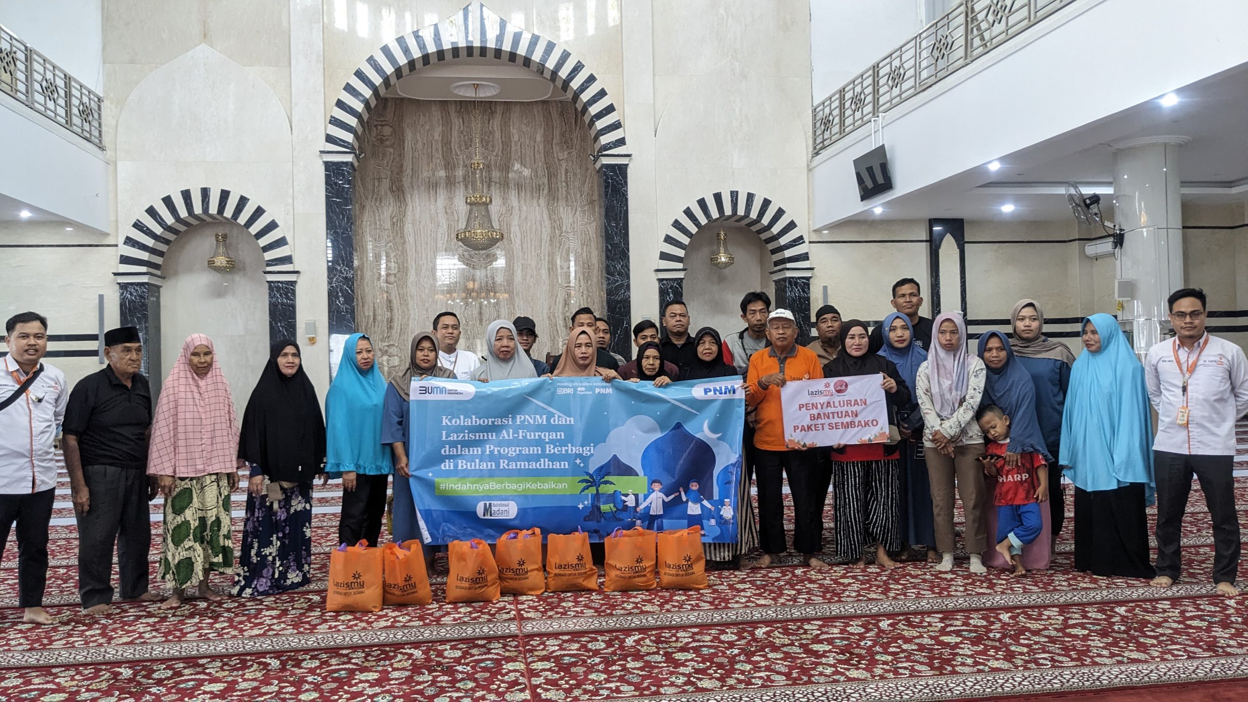 Pada hari Jumat, 21 Maret 2025, LAZISMU Al Furqan Banjarmasin menyalurkan 30 paket sembako kepada keluarga karyawan PNM di Aula Masjid Al Furqan. Acara ini dihadiri oleh Manager PNM, Pak Chandra, dan jajaran karyawan.