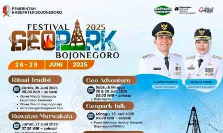 Bupati Wahono juga menjelaskan kekayaan Bojonegoro di bidang geopark. Kayangan Api merupakan salah satu geopark unggulan yang diusulkan Kabupaten Bojonegoro untuk mendapatkan pengakuan UNESCO Global Geopark 2025. “Saya sangat mendukung kegiatan ini, kedepan diharapkan bisa diselenggarakan lagi dengan baik dan berkelanjutan,” pesan Bupati Bojonegoro.