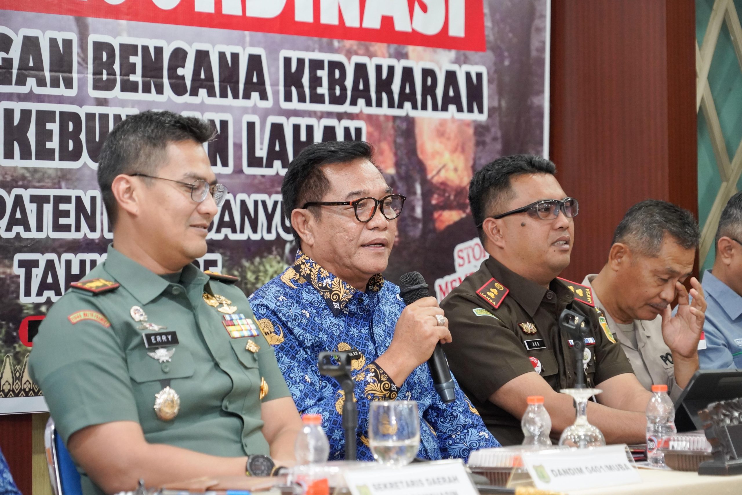 Kegiatan ini dipimpin langsung oleh Bupati Musi Banyuasin, H M Toha SH, dan dihadiri oleh unsur Forum Komunikasi Pimpinan Daerah (Forkopimda), Sekretaris Daerah Kabupaten Muba Dr Drs H Apriyadi MSi, perwakilan BMKG, BPBD Provinsi Sumatera Selatan, Kepala Perangkat Daerah, para camat, serta 36 perwakilan perusahaan dari sektor perkebunan, pertambangan, dan migas yang beroperasi di wilayah Muba.
