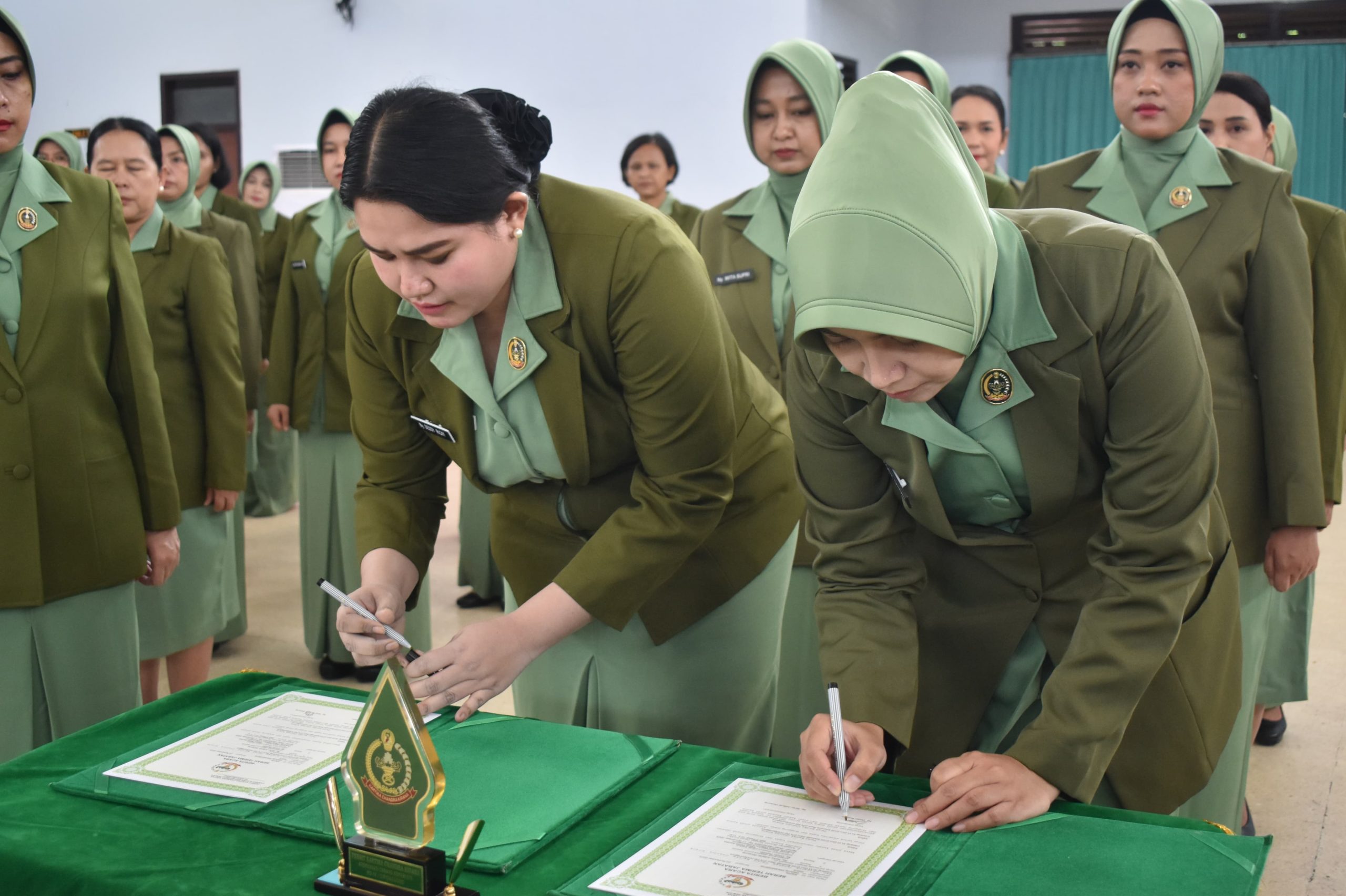 Setelah serah terima di Gedung Warastratama dilanjutkan acara lepas sambut di halaman Makodim 0725/Sragen yang diikuti oleh anggota dan Persit Kodim 0725/Sragen. ( Suwarto).