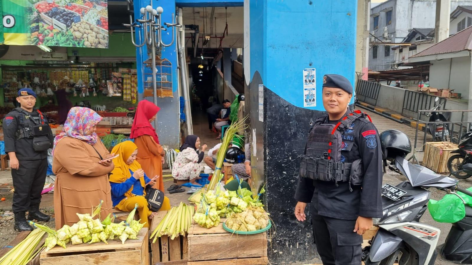 Hari keempat lebaran idul Fitri 1446 H, Batalyon A Pelopor Satbrimob Polda Kaltim meningkatkan patroli di sejumlah pasar tradisional guna mengantisipasi lonjakan pengunjung serta mencegah tindak kriminalitas, Kamis (3/4/2025).