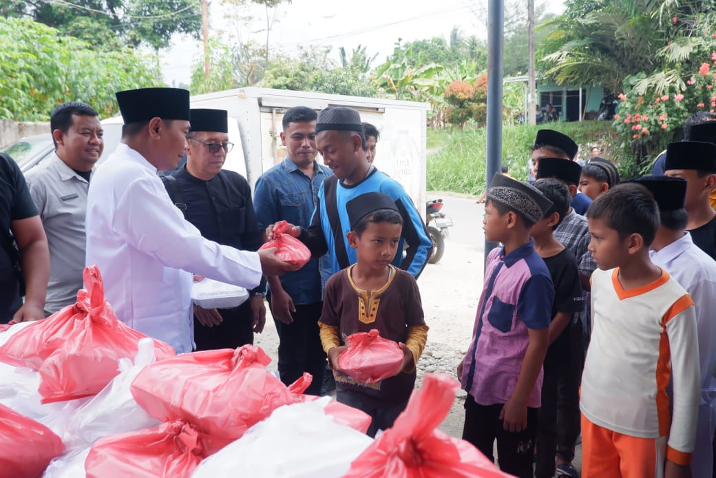Wakil Bupati Deliserdang terpilih, Lom Lom Suwondo membagikan ratusan nasi bungkus jumat berokah kepada jemaah usai Shalat Jumat di Masjid Asyakirin, Desa Sumbul, Kecamatan STM Hilir, Jumat (7/2/25).