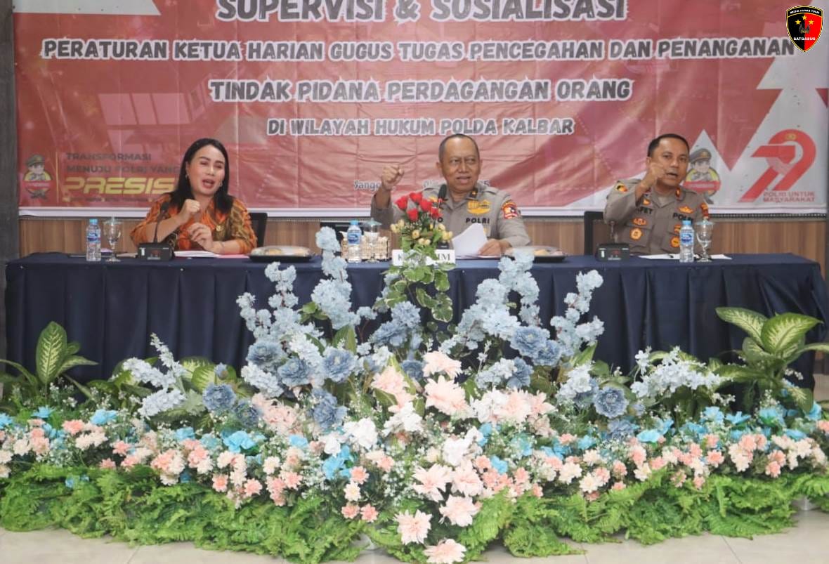 Mabes Polri melaksanakan supervisi dan sosialisasi terkait Peraturan Ketua Harian Gugus Tugas Pencegahan dan Penanganan Tindak Pidana Perdagangan Orang (TPPO) di Graha Wira Pratama Polres Sanggau, Kamis (2/10/2025).