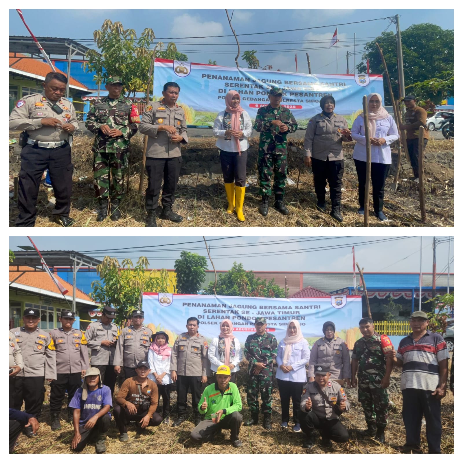 Dalam upaya mendukung ketahanan pangan nasional, Polsek Gedangan mengikuti kegiatan penanaman jagung serentak, Rabu (6/8/2025). Kegiatan dengan pemanfaatan lahan tidur di Desa Semambung ini juga dihadiri Forkopimka setempat dan tokoh agama.