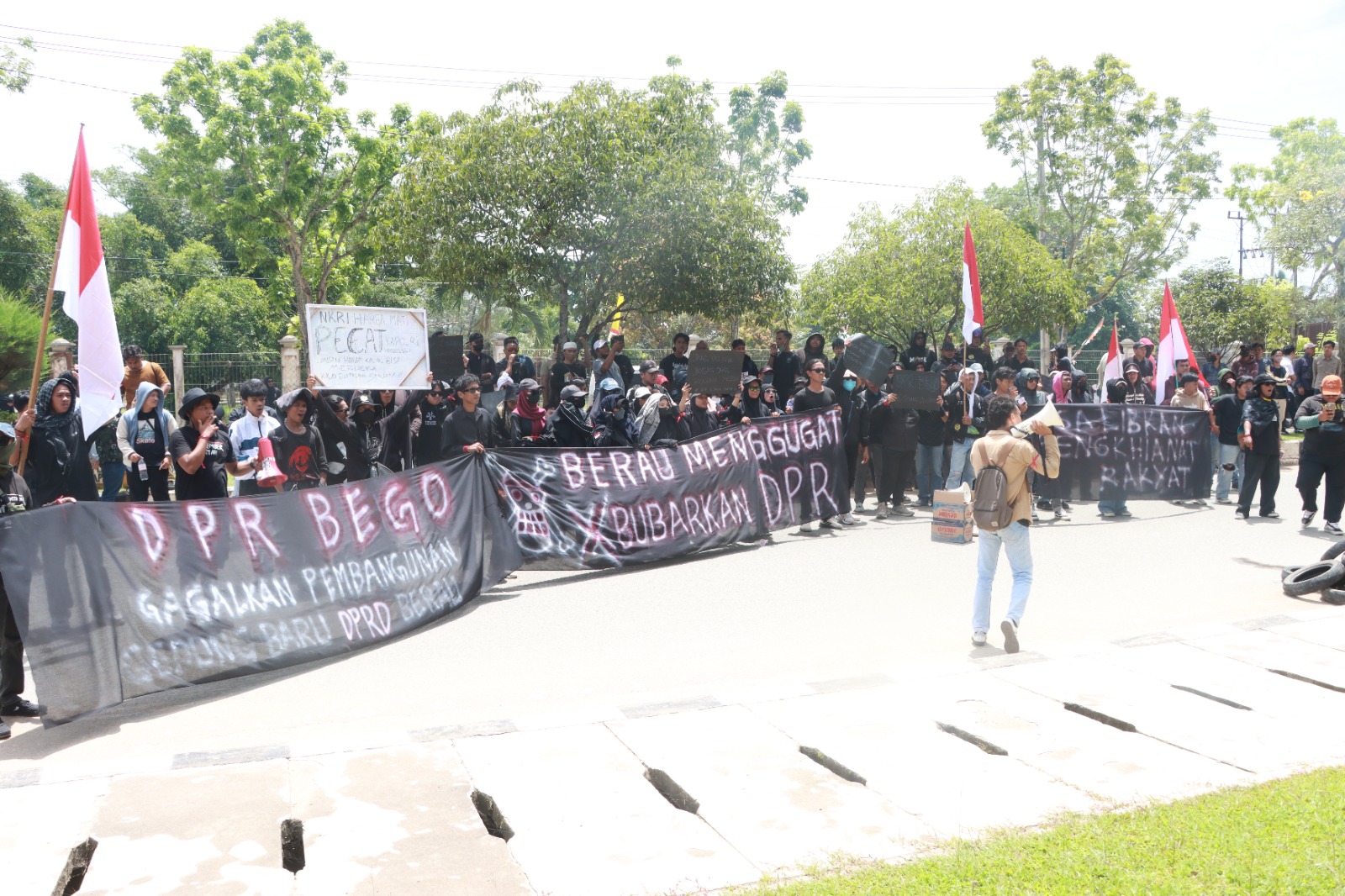 Ratusan mahasiswa dan masyarakat menggelar aksi demonstrasi di depan Kantor DPRD Kabupaten Berau, Senin (1/9/2025). Massa menyuarakan berbagai tuntutan, mulai dari isu nasional hingga persoalan daerah yang menyangkut kepentingan rakyat.