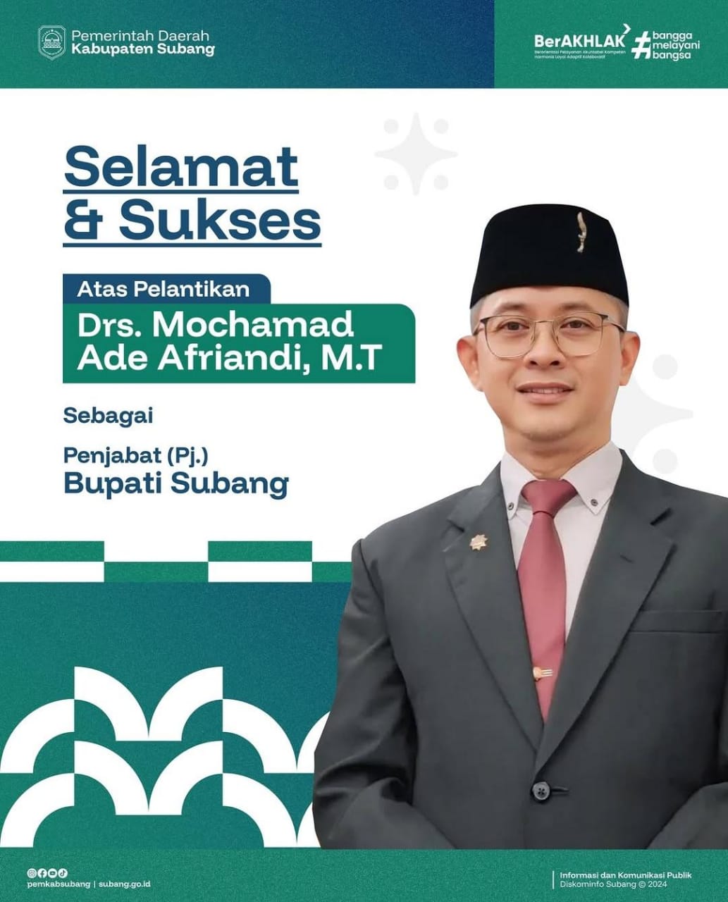 Dan berdasarkan Keputusan Mendagri nomor 100.2.1.3-106 Tahun 2025. “Mengangkat” Saudara Drs. Mohamad Ade Afriandi, M.T. sebagai Penjabat Bupati Subang.