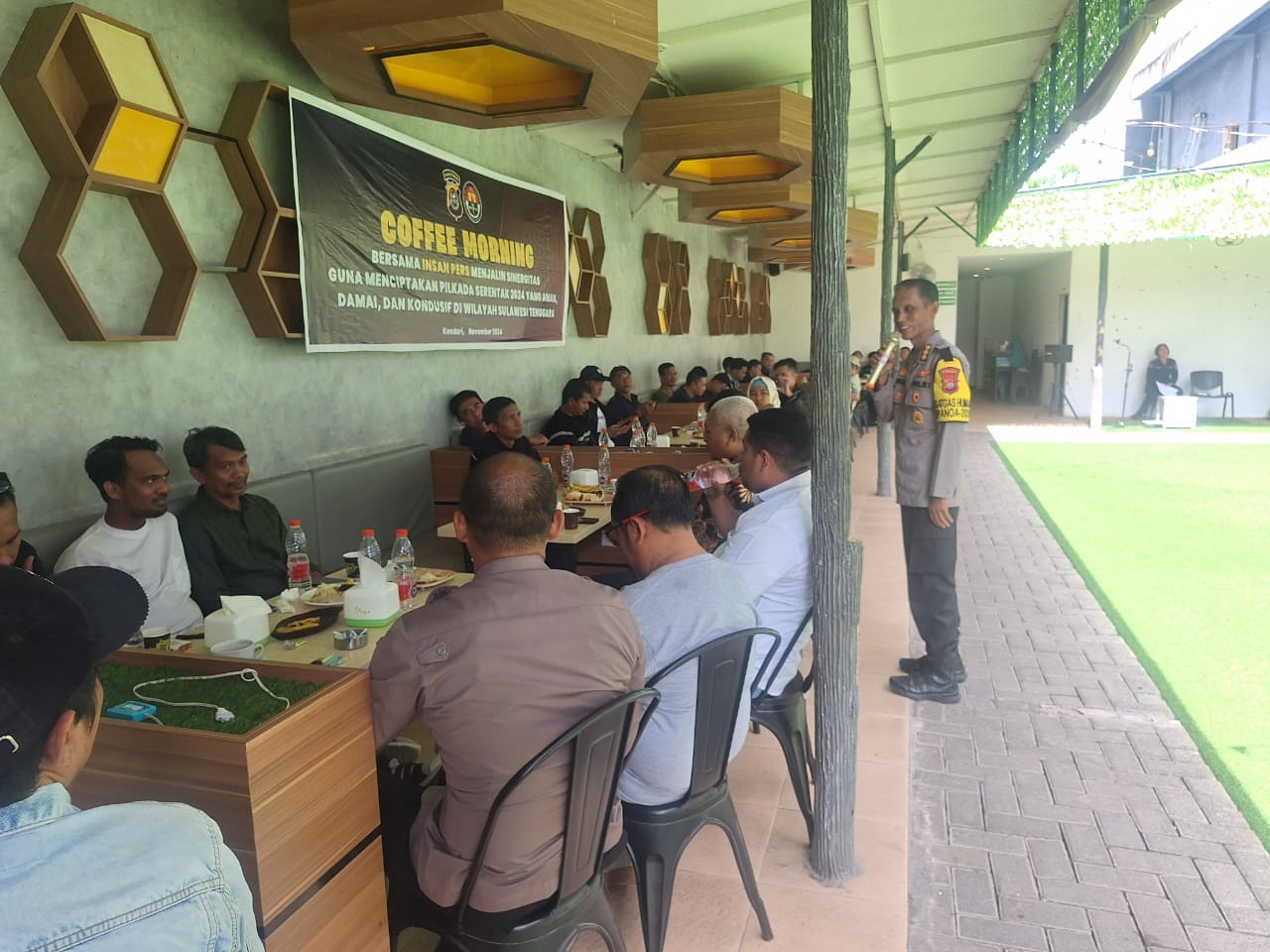 Bid Humas Polda Sultra menggelar coffee morning bersama Insan Pers di salah satu warung kopi di Kendari, Kamis (21/11/2024). Mengusung tema “Bersama Insan Pers Menjalin Sinergitas Guna Menciptakan Pilkada Serentak 2024 yang Aman, Damai, dan Kondusif di Wilayah Sultra,” kegiatan ini bertujuan mempererat silaturahmi jelang Pilkada Serentak yang semakin dekat.