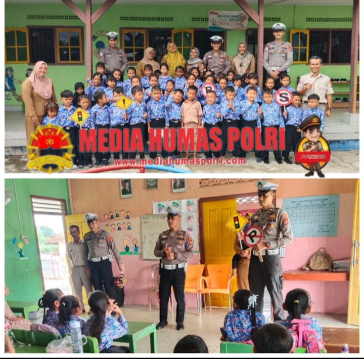 Melaksanakan kegiatan sosialisasi di TK PKK Tambah Subur Kecamatan Way Bungur Kabupaten Lampung Timur, Rabu (05/02/2025), Kapolres Lampung Timur AKBP Benny Prasetya melalui Kasat Lantas AKP Glend Felix Siagian mengatakan hal ini merupakan pengenalan tentang tertib berlalulintas sejak dini.