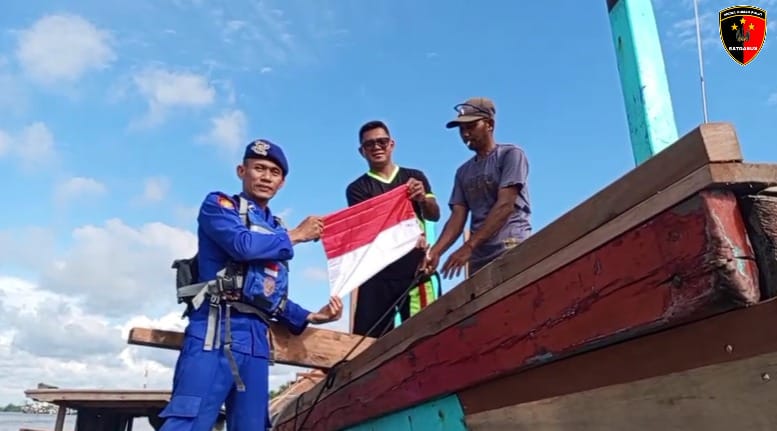 Menyambut Hari Ulang Tahun Kemerdekaan Republik Indonesia ke-80 tahun 2025, Satuan Polisi Air dan Udara (Satpol Airud) Polres Ketapang melaksanakan kegiatan pembagian bendera Merah Putih kepada warga pesisir, Jumat (15/08/2025).