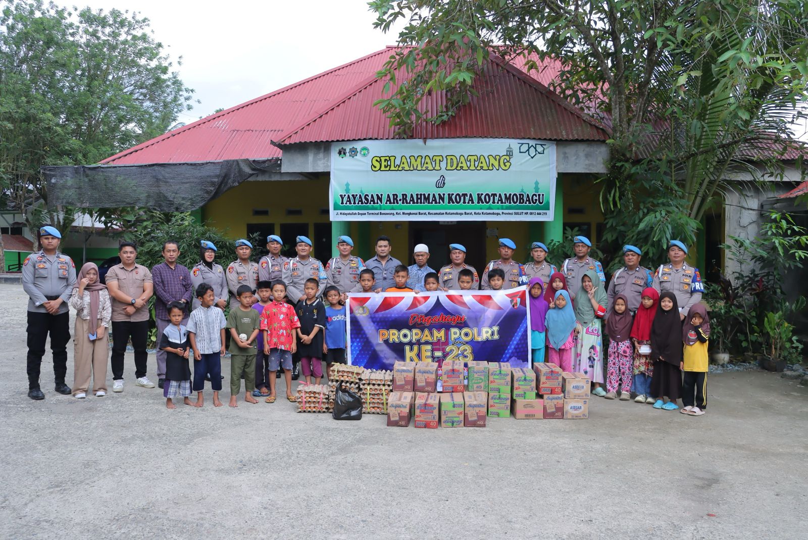 Kegiatan ini merupakan Bakti Sosial dalam rangka memperingati hari ulang tahun Propam Polri ke-23 tahun 2025 dalam bentuk penyerahan Sembako dan makanan kepada panti asuhan yang berada di Kota Kotamobagu.
