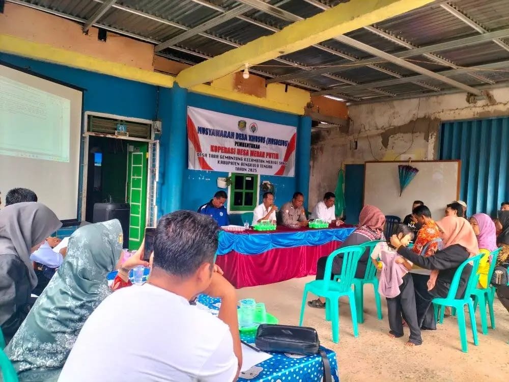 Pemerintah Desa Taba Gemantung Kecamatan Merigi Sakti Kabupaten Bengkulu Tengah Provinsi Bengkulu Bersama Dengan BPD menggelar Musyawarah Desa Khusus (Musdesus) dalam rangka pembentukan Koperasi Desa Merah Putih. Kegiatan ini berlangsung di ruang rapat Kantor Desa Taba Gemantung Kecamatan Merigi Sakti bersama berbagai unsur penting masyarakat lainnya.