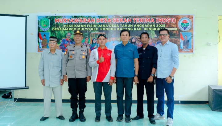 Desa Margo mulyo kecamatan pondok kubang kabupaten Bengkulu tengah menggelar Musyawarah Desa Serah Terima (MDST) tahun 2025 sebagai bagian dari transparansi dan akuntabilitas pemerintah desa terhadap pelaksanaan pembangunan tahun 2025. Acara ini dihadiri oleh berbagai pihak, mulai dari Kepala Desa Margo mulyo, Ketua BPD, Kapolsek talang empat bapak Camat Pondok kubang, tenaga ahli pendamping desa,Babinkantibmas,Babinsa,serta aparatur desa, hingga tokoh masyarakat.
