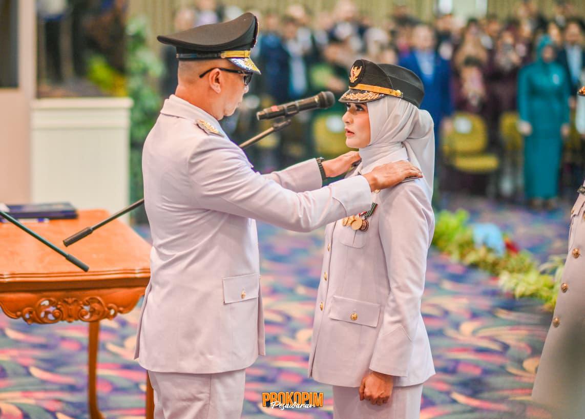 Acara dimulai dengan pembacaan Surat Keputusan Menteri Dalam Negeri, dilanjutkan pengucapan sumpah jabatan, penandatanganan berita acara, pemasangan tanda pangkat, penyematan tanda jabatan, dan penyerahan keputusan Mendagri.