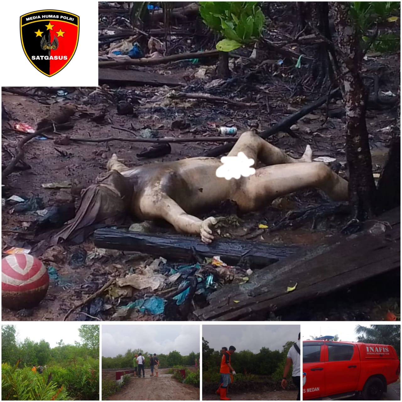 Diperkirakan, mayat seorang laki laki berusia sekira 35 Tahun, kulit kuning langsat, rambut ikal.