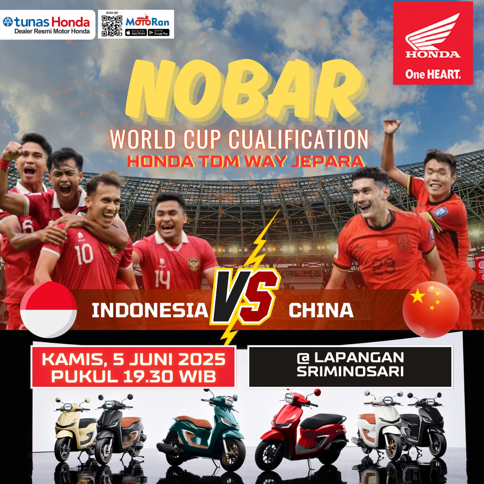 Dengan semangat penuh dan dukungan dari TDM Way Jepara, kami mengajak seluruh pecinta bola khususnya masyarakat Sriminosari untuk menyaksikan bersama pertandingan kualifikasi Piala Dunia antara Indonesia melawan China.