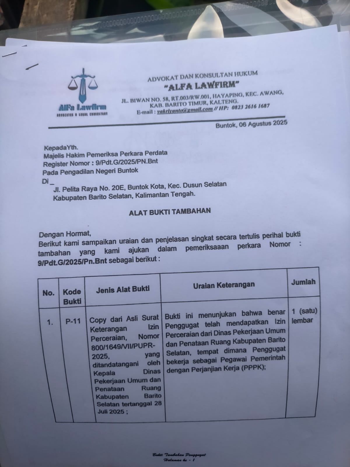 Resiko Oknum Penggugat Menggunakan Surat Izin Cerai Sumir Gugatan Ny LN tidak diterima,sesuai Putusan PN Buntok No 9/Pdt.G/2025/Pn.Bnt dan tampaknya sudah Incraht sebagaimana penjelasan pk RN kepada awak media Mhp tgl 13 September 2025 Skj 18.35 bbwi melalui Tlp seluler.