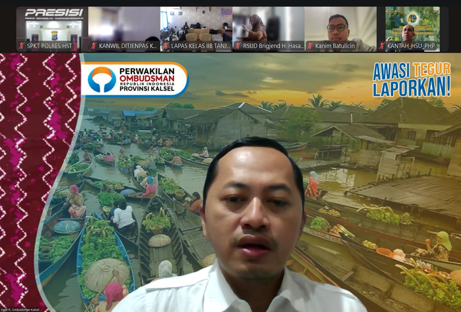 Lokakarya Penilaian Maladministrasi Penyelenggaraan Pelayanan Publik oleh Ombudsman Kalsel dilakukan secara daring. Acara berisi penyampaian materi mengenai teknis penilaian oleh Ombudsman Kalsel. Dihadiri oleh sekitar 224 partisipan, berasal dari jajaran Pemerintah Provinsi Kalimantan Selatan (Inspektorat/Biro/Dinas/Badan/SMA/SMK/Panti Sosial/RSUD), Pemerintah Kabupaten/Kota di Kalsel (Inspektorat/Bagian/Dinas/Badan/SD/SMP/RSUD), serta lingkup Kementerian dan Lembaga di Kalsel meliputi Polres/Polresta, Kantor Pertanahan, Kantor Imigrasi, dan Bapas/Lapas/Rutan. Total se Indonesia penilaian mencakup 46 Kementerian/Lembaga serta 264 Pemerintah Daerah (Pemda).