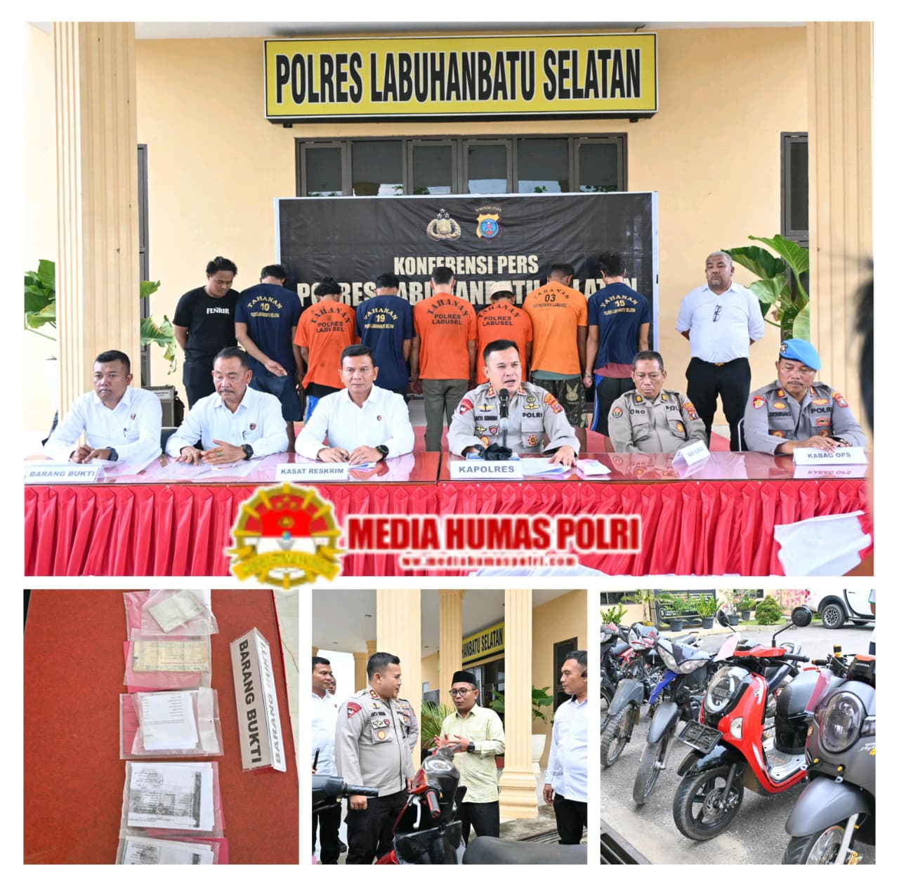 “Dalam pelaksanaan Operasi Kancil Toba 2025, Polres Labuhanbatu Selatan berhasil mengamankan 8 orang tersangka diantaranya ASS alias Adi (34), MAH alias Anti (28), DH alias Demping (25), MH alias Bibi (25), ESN alias Edi Kocal (37), JS alias Jarot (40), MAD alias Toni Iwir-iwir (50), dan RP alias Riyan (31) yang keseluruhannya adalah warga Labuhanbatu Selatan.
