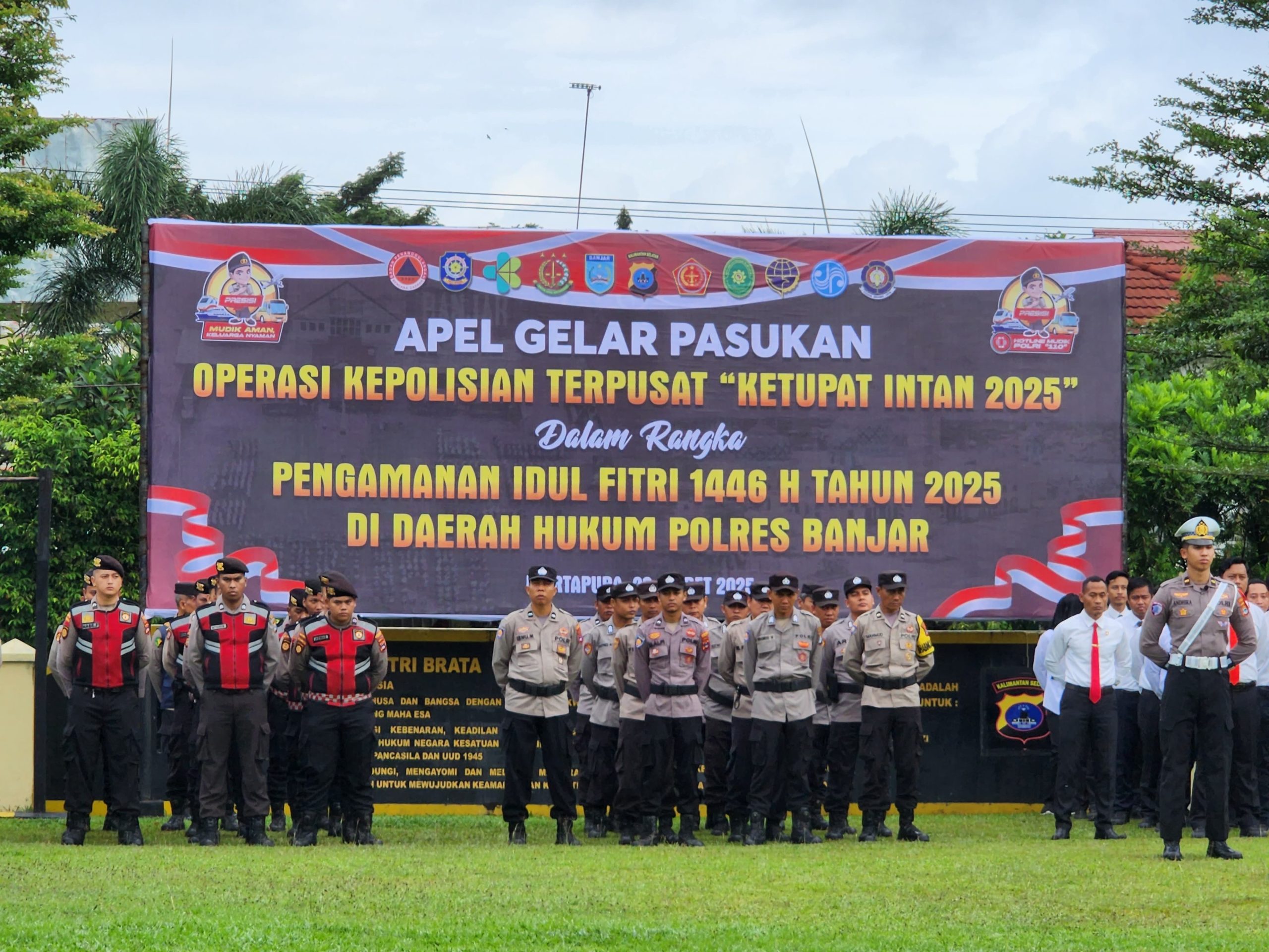 Dalam rangka memastikan keamanan dan kelancaran arus mudik serta perayaan Idul Fitri 1446 H, Polres Banjar menggelar Apel Pasukan Operasi Ketupat Intan 2025, Kamis (20/3/2025).