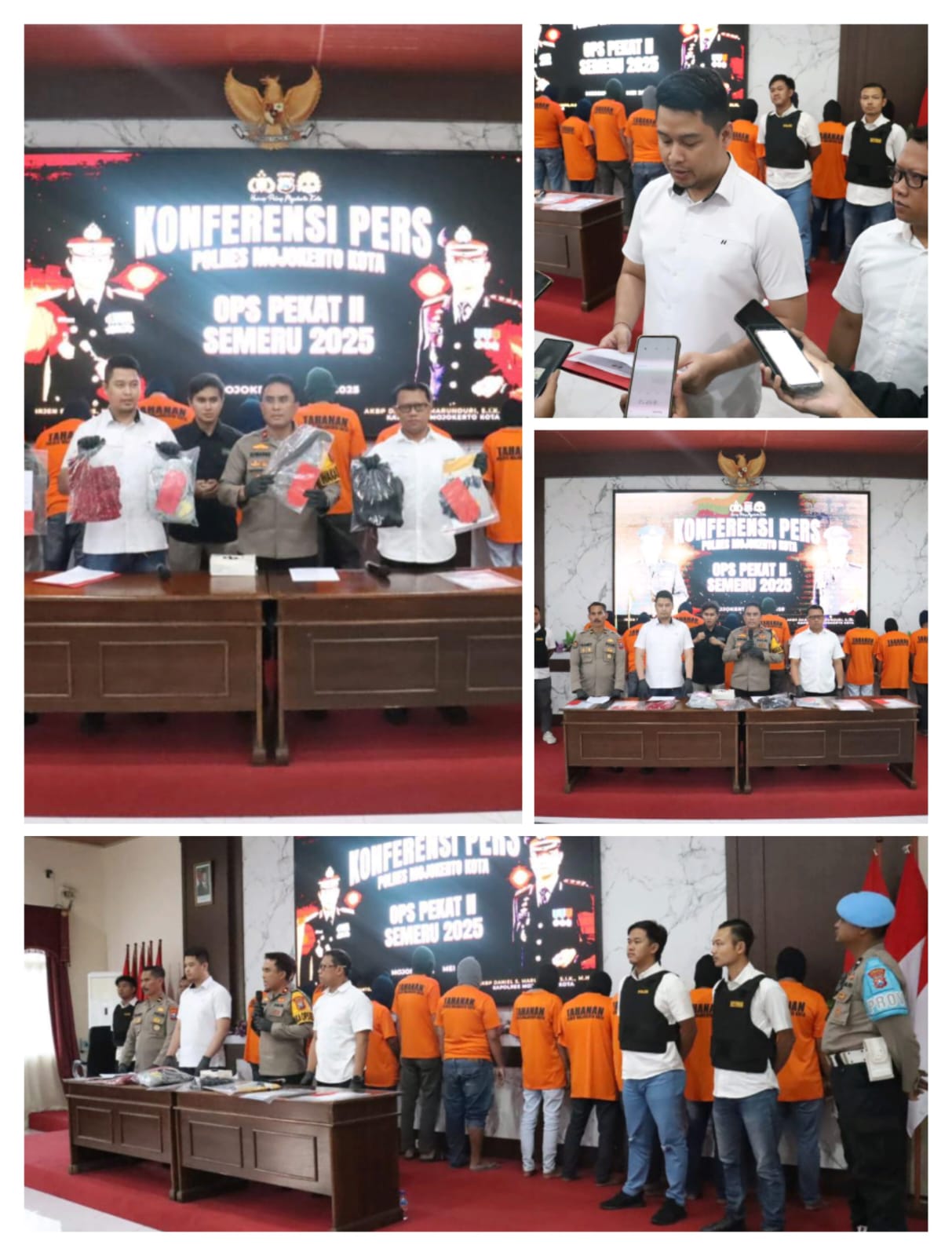 Hal ini disampaikan oleh Kapolres Mojokerto Kota AKBP Daniel S. Marunduri S.I.K., M.H. melalui Wakapolres Kompol Suwarno S.H., Didampingi Kasat Reskrim AKP Siko Sesaria Putra Suma, S.I.K., M.A.P., M.H. serta Kasihumas IPDA Slamet Hariyono. Kompol Suwarno menjelaskan pelaku yang diamankan merupakan hasil dari Ops Pekat II Semeru 2025 yang digelar sejak 1 hingga 14 Mei 2025.