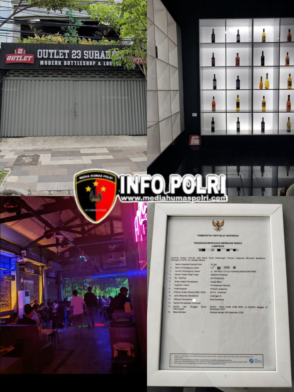 Semakin marak Tempat penjualan miras (minuman keras) salah satunya Outlet 23 yang diketahui di bawah naungan PT Lim Siang Huat Balindo berlokasi di jalan Kertajaya No. 107, Kecamatan Gubeng, Kota Surabaya, diduga kuat menjual minuman keras dengan ijin kurang lengkap bahkan sudah memperjualbelikan.