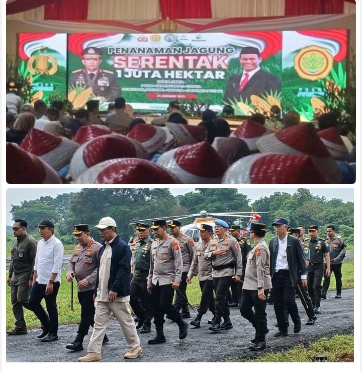 Kapolri bersama Mentri Pertanian di pagi ini melaksanakan kegiatan penanaman Jagung serentak satu juta hektar,untuk mendukung program Astacita ketahanan pangan melalui Swasembada pangan. bertempat di Desa Karangmukti Kecamatan Cipeundeuy Kabupaten Subang Jawa Barat. Selasa, (21/01/2025).