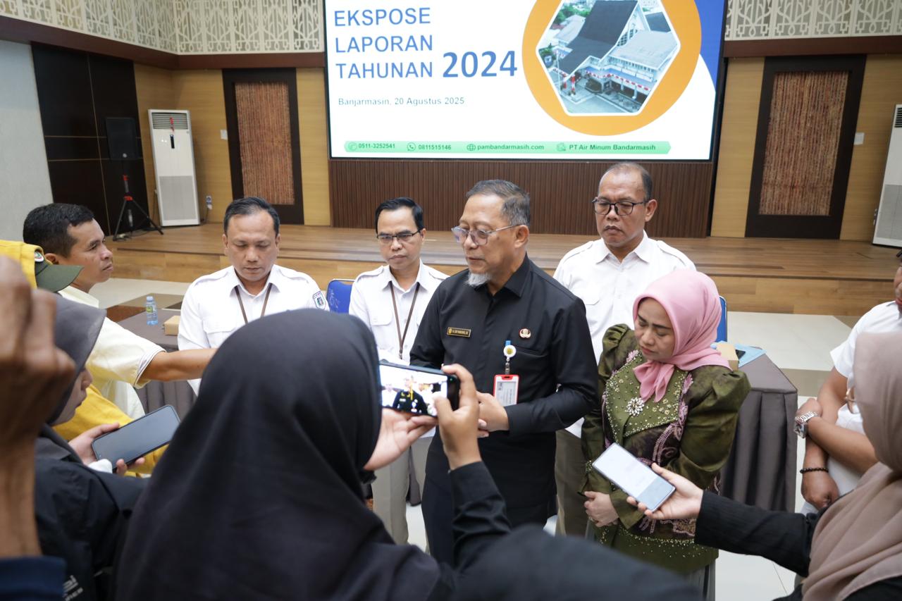 PAM Bandarmasih kembali gelar press rilis Neraca Komparatif (Audit) per 31 Desember 2023 dan 31 Desember 2024, di Aula PAM Bandarmasih, Rabu (20/8/2025).
