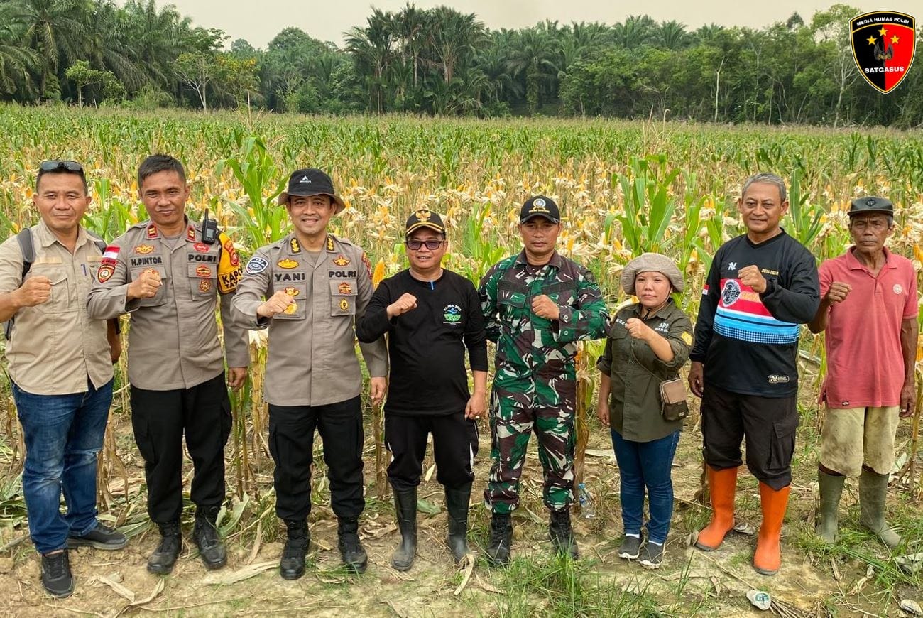 Agenda utama yang dilakukan yakni pengecekan langsung perkembangan tanaman jagung yang saat ini memasuki usia tanam ke-97 hari di atas lahan seluas satu hektare. Kondisi tanaman dinilai cukup baik dan menunjukkan progres positif menjelang masa panen.