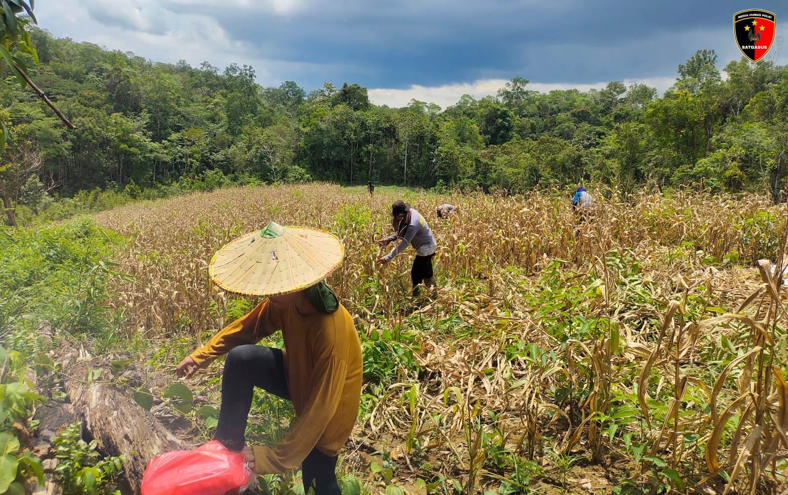 Selain personel Polsek, kegiatan panen jagung di Dusun Syam turut dihadiri perangkat desa serta sejumlah warga setempat. Mereka bersama-sama memetik hasil panen dengan semangat kebersamaan dan gotong royong. Suasana penuh kekeluargaan terlihat jelas di tengah hamparan tanaman jagung yang menguning siap panen.