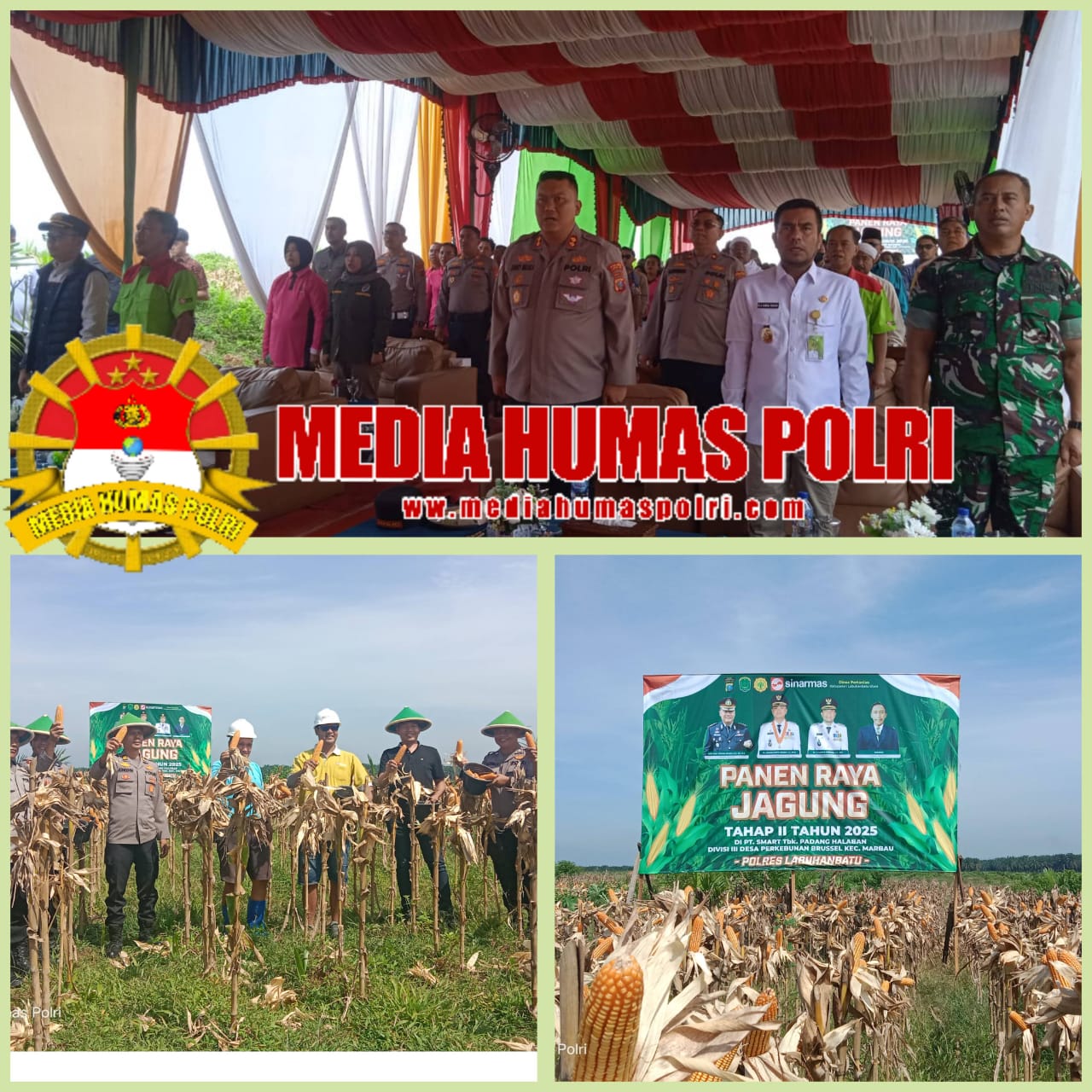 Dalam rangka mendukung Program Presiden Republik Indonesia Prabowo Subianto tentang ketahanan pangan nasional, Polres labuhan batu menggelar panen raya jagung Tahap II Tahun 2025 yang berada di area perkebunan PT.smart TBK Padang Halaban,desa Brussel,kecamatan Merbau,kabupaten labuhan batu utara 5 Juni 2025.