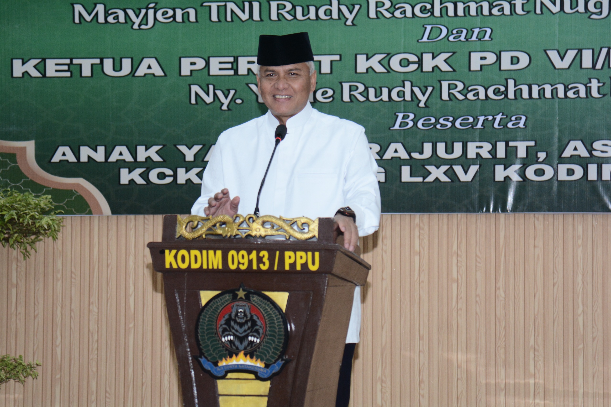 Dalam sambutannya, Pangdam mengungkapkan rasa syukurnya dapat berkunjung ke Kodim 0913/PPU dan bersilaturahmi dengan prajurit serta keluarganya di bulan suci Ramadan.