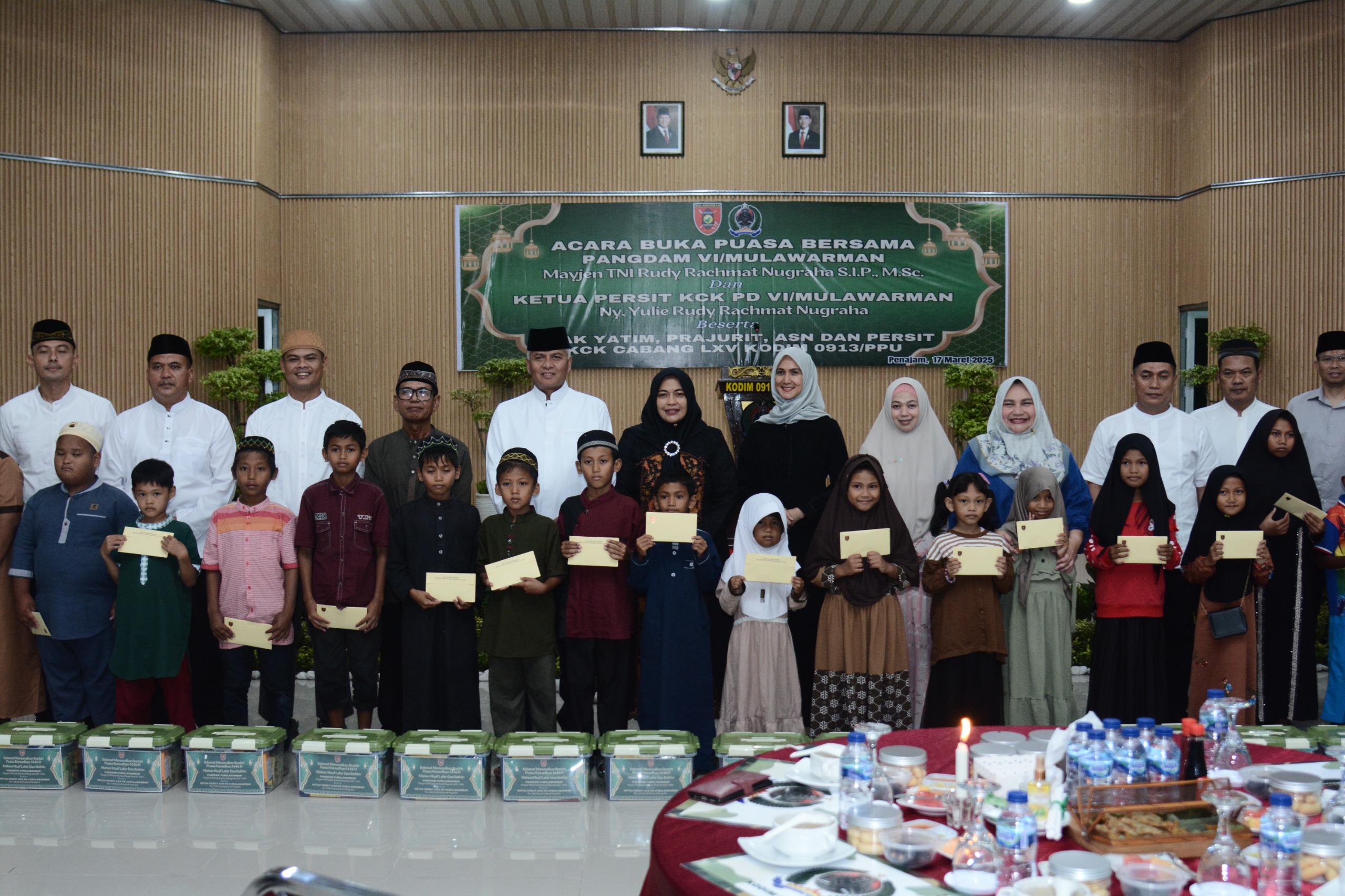 Pangdam VI/Mulawarman, Mayjen TNI Rudy Rachmat Nugraha, S.I.P., M.Sc., bersama Ketua Persit KCK PD VI/Mulawarman, menggelar buka puasa bersama dengan prajurit dan keluarga besar Kodim 0913/PPU. Acara ini berlangsung di Gedung Serbaguna Kodim 0913/PPU, Kabupaten Penajam Paser Utara, dan dihadiri sekitar 400 peserta, Senin (17/03/25).